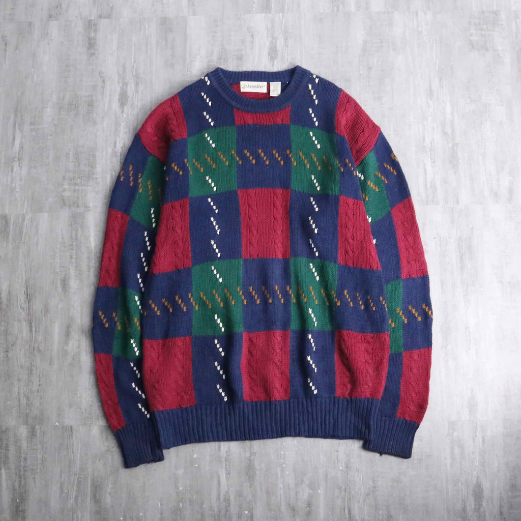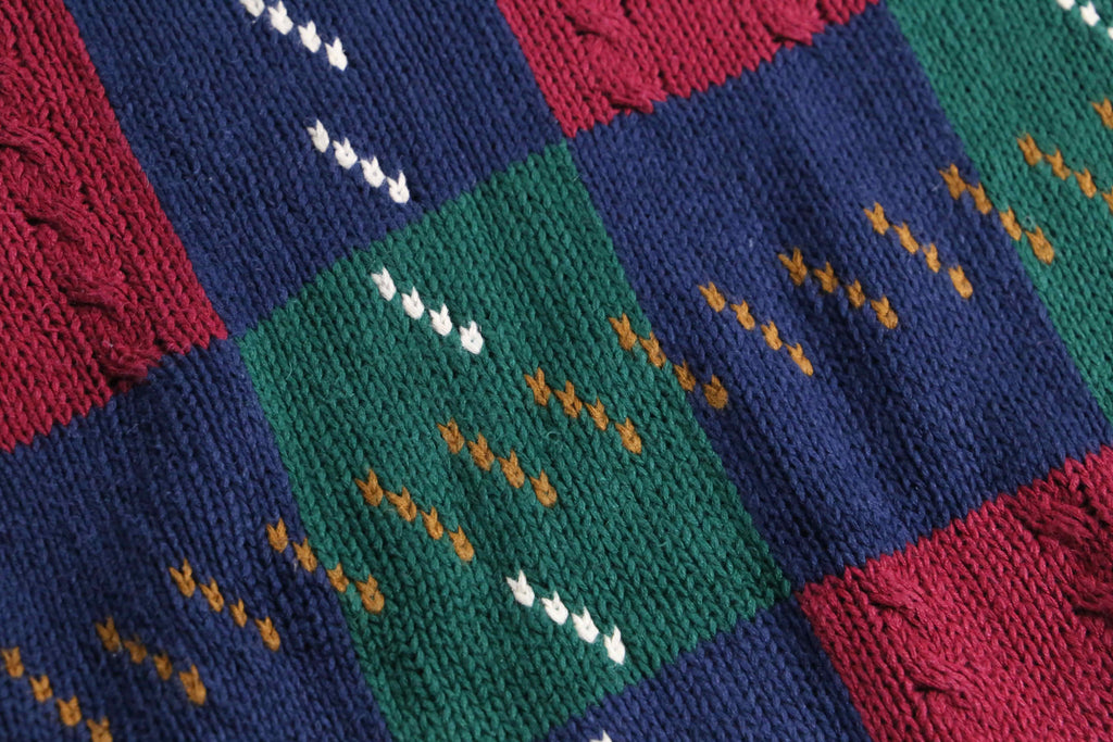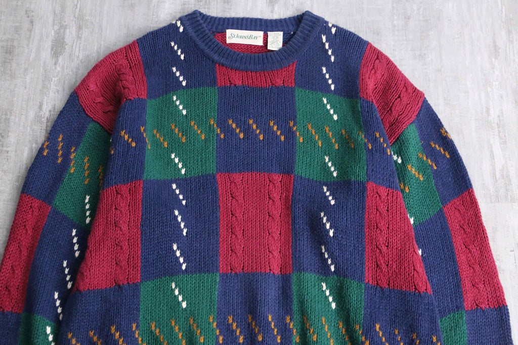クラシックでもリラックス感を用いたデザインと着心地を追求し、古着の中でも高い人気と支持を誇るブランド”STJohn’sBay”より、ブロックチェックが可愛らしい丸襟ニットの入荷。