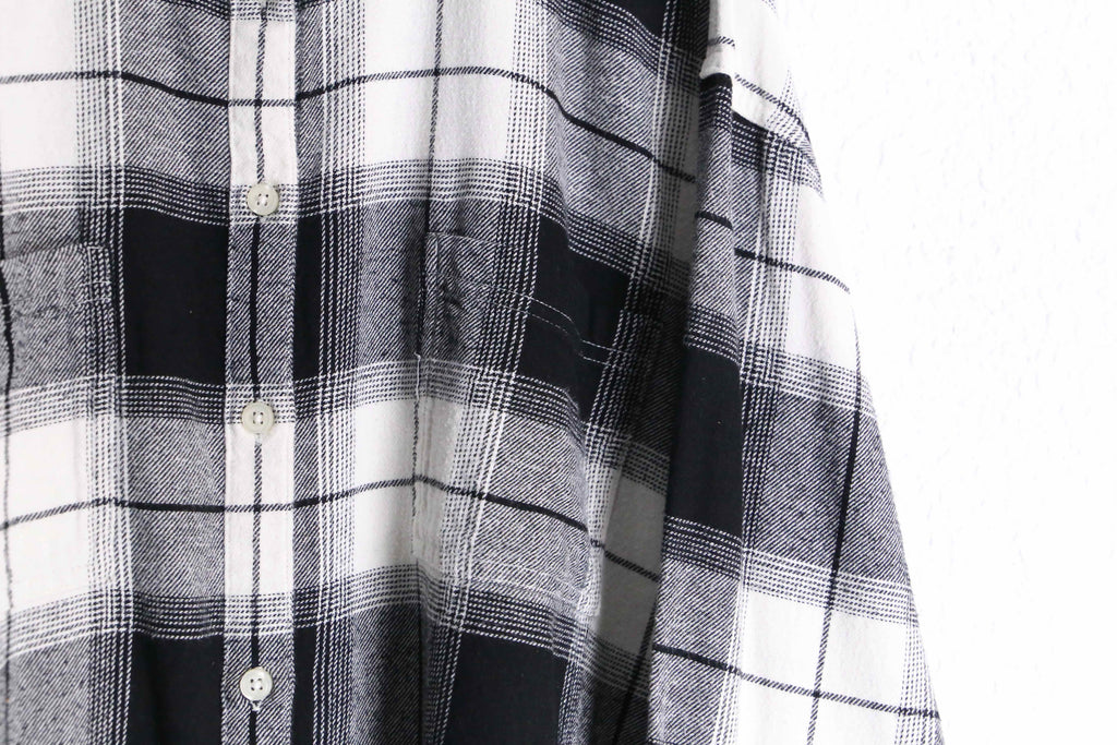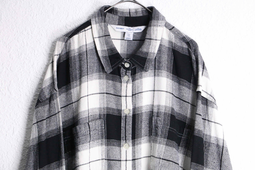 シンプルでありながら、シルエットの良さと肌触りや生地の質の良さから定評のあるブランド”OLD NAVY”より、モノトーンチェックのボックスシャツの入荷。