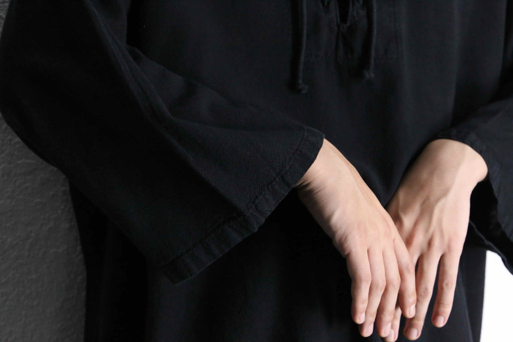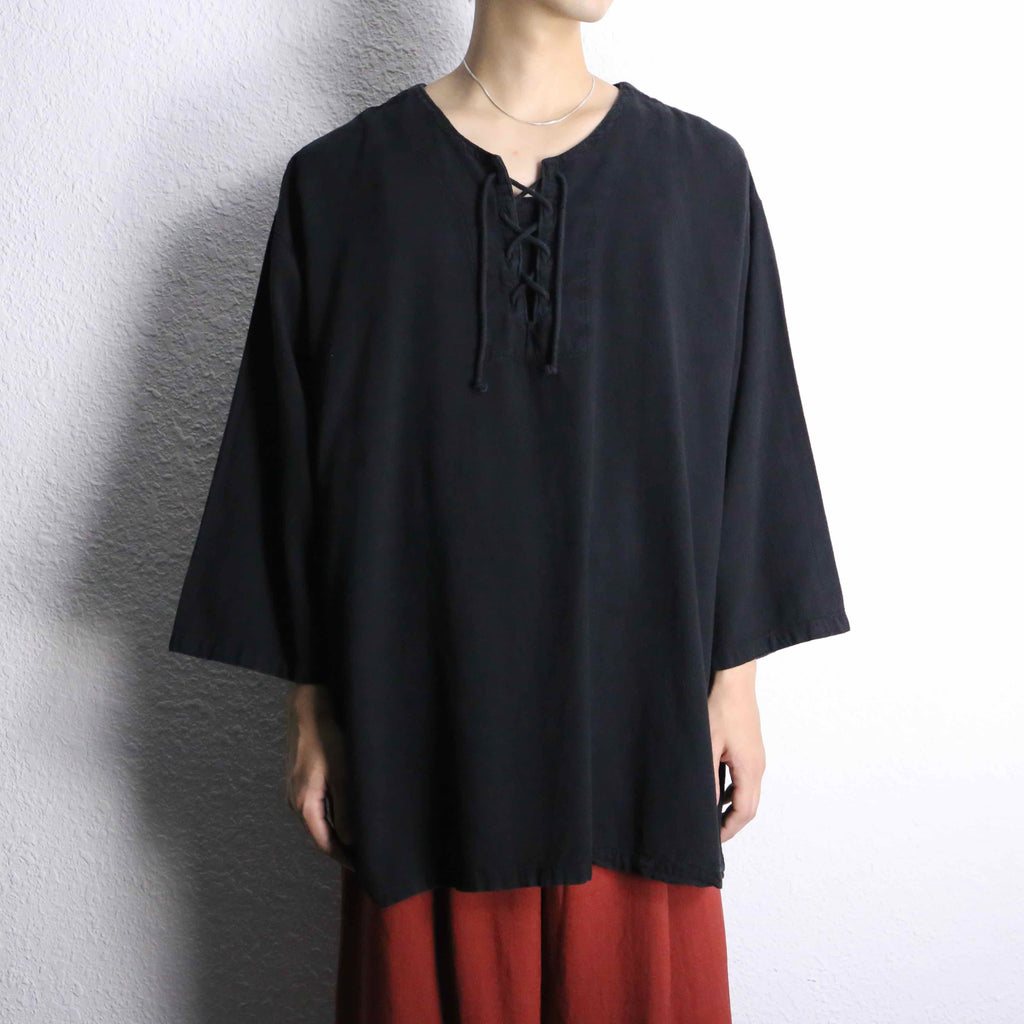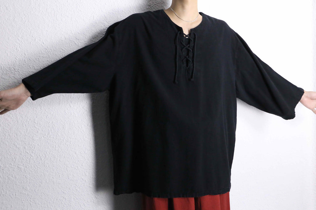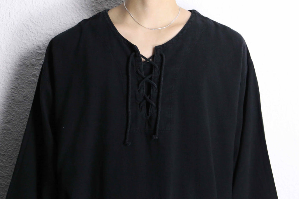 色褪せた黒がまたナチュラルな雰囲気を醸し出すオーバーサイズのレースアッププルオーバーの入荷。