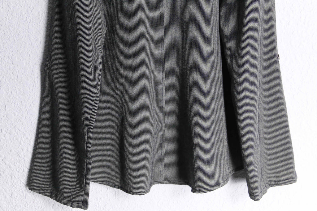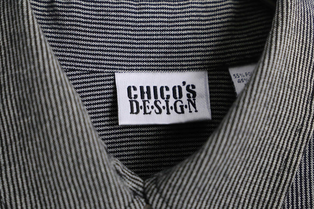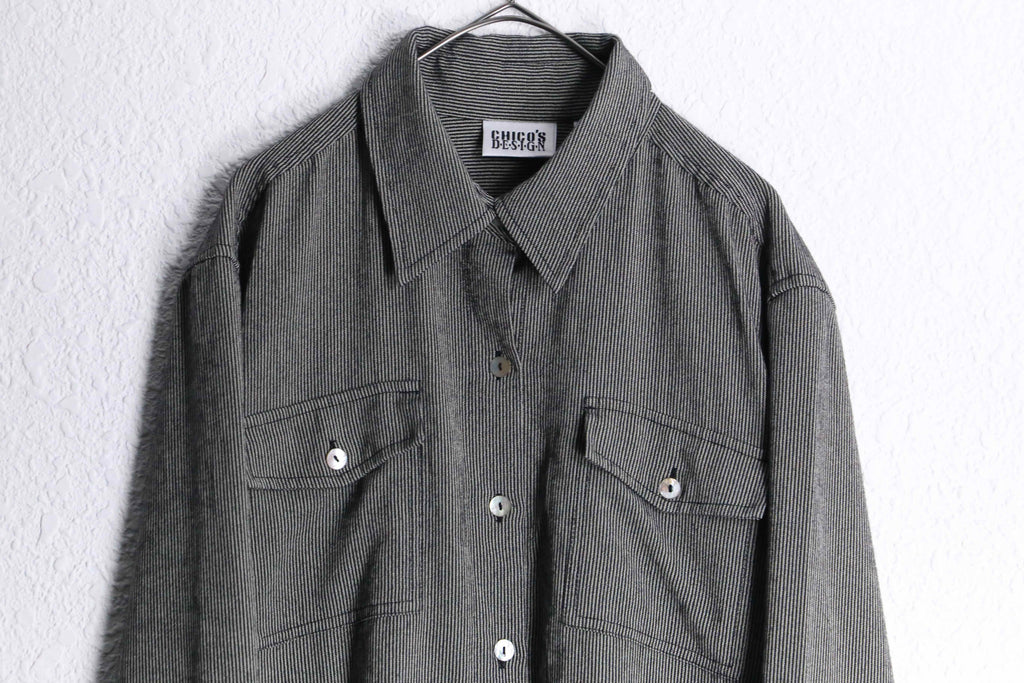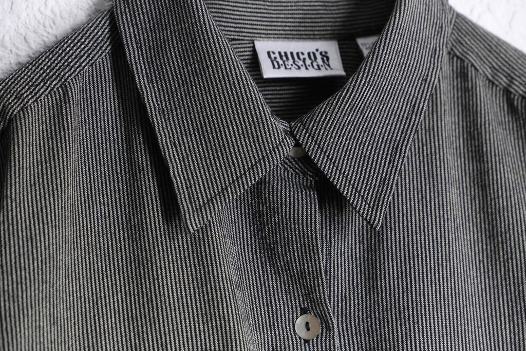 当店でそのデザイン性から高い人気を誇るアメリカのブランド”CHICO’S”。そんなデザインブランドより、グレーとブラックのストライプが効いたロングスリーブシャツの入荷。