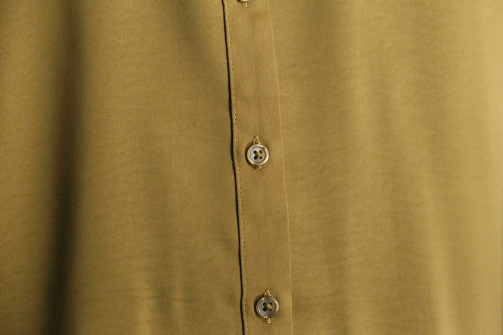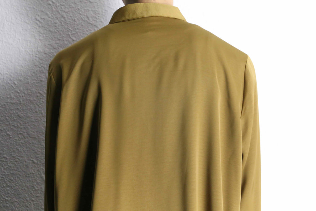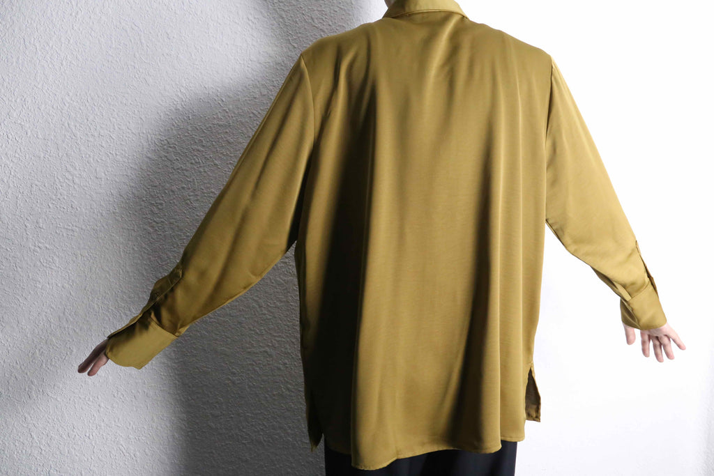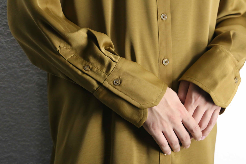マスタードカラーで光沢感の美しいシャツの入荷。