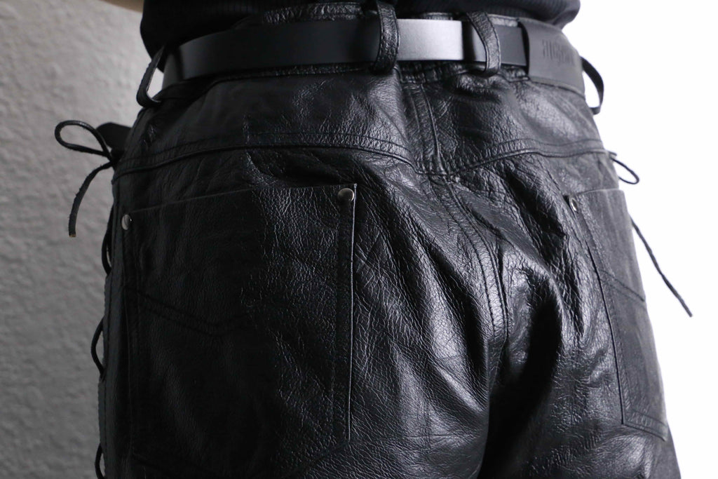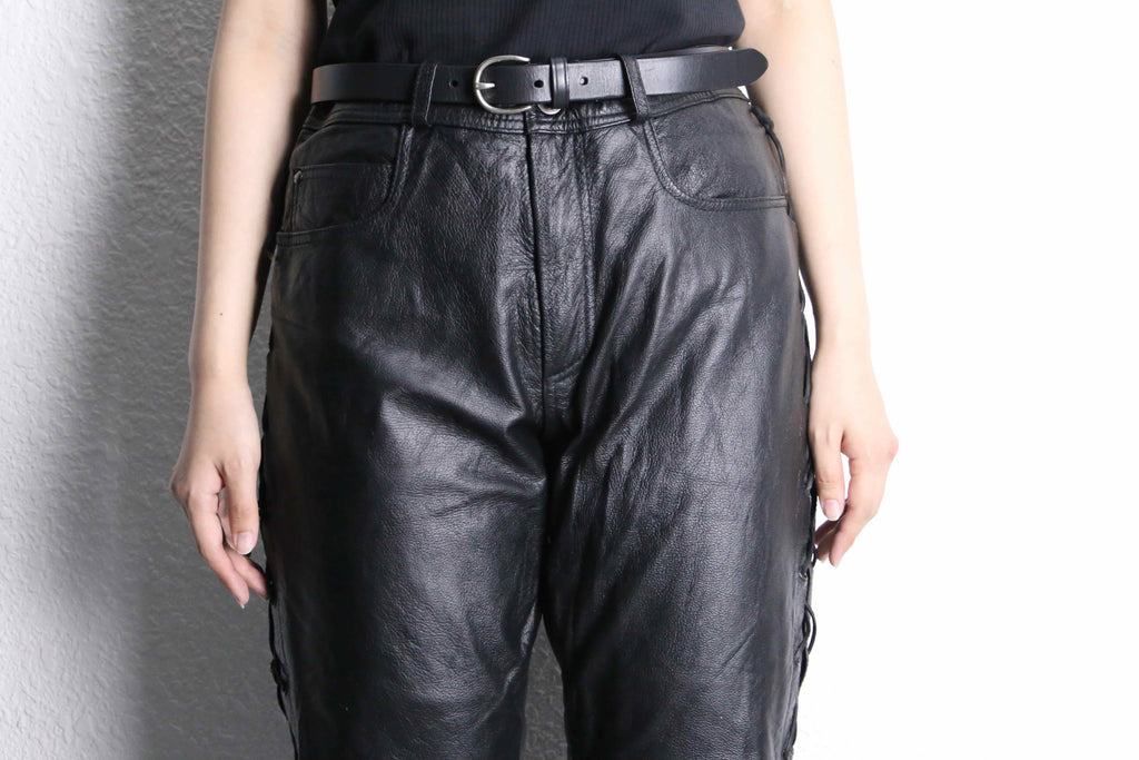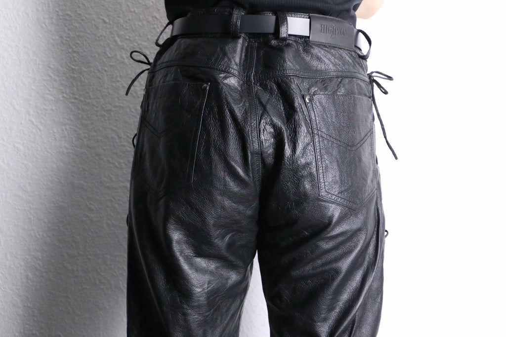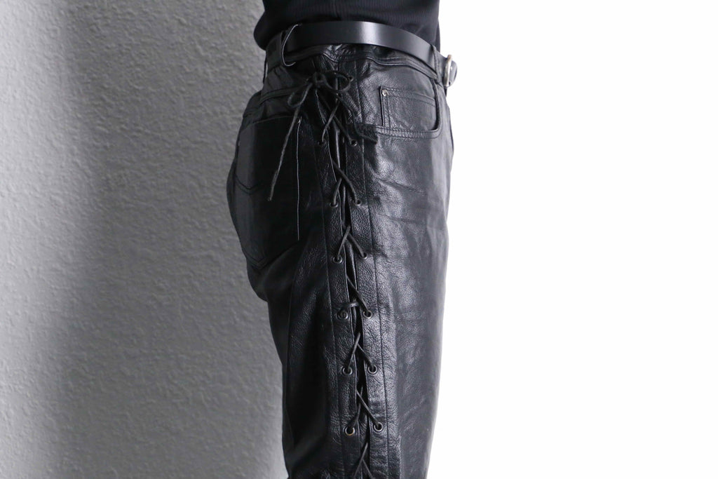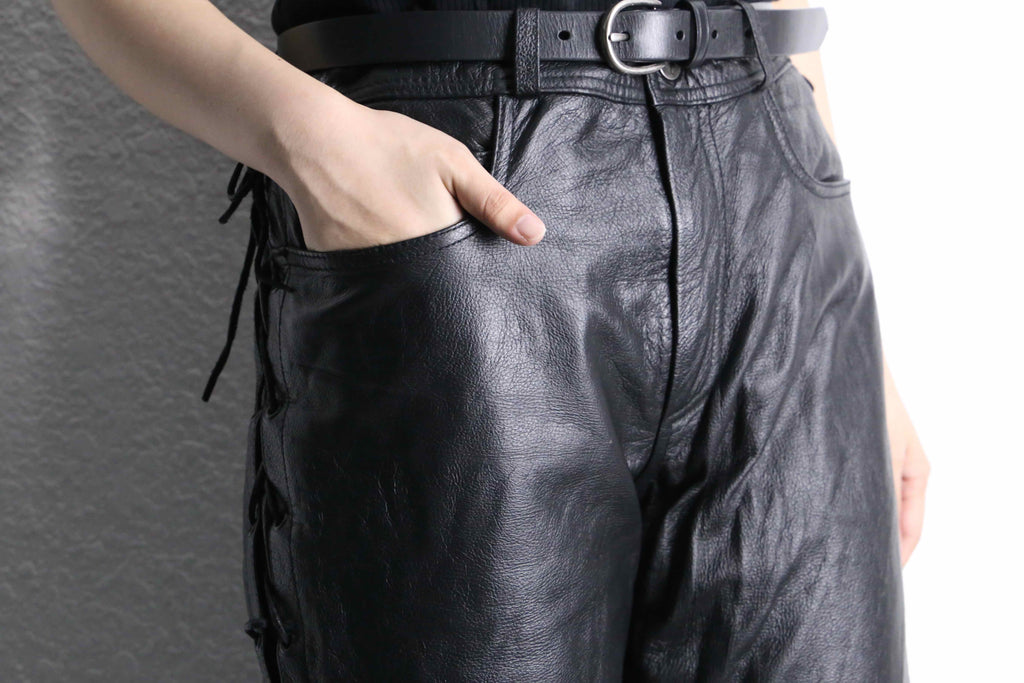 レースアップによるサイドデザインが印象的なレザーパンツの入荷。