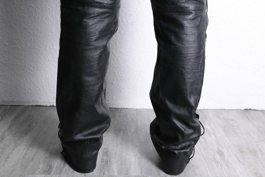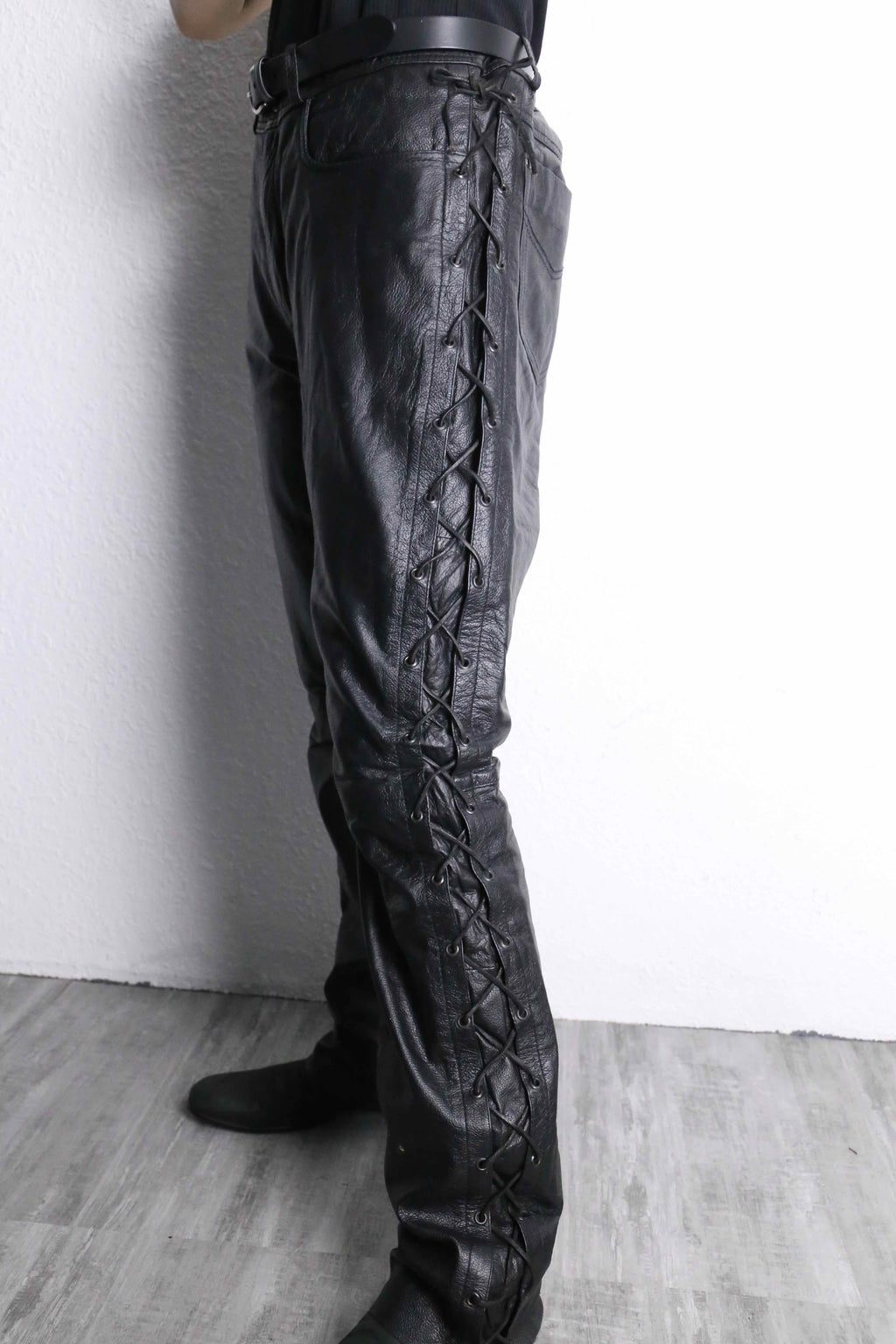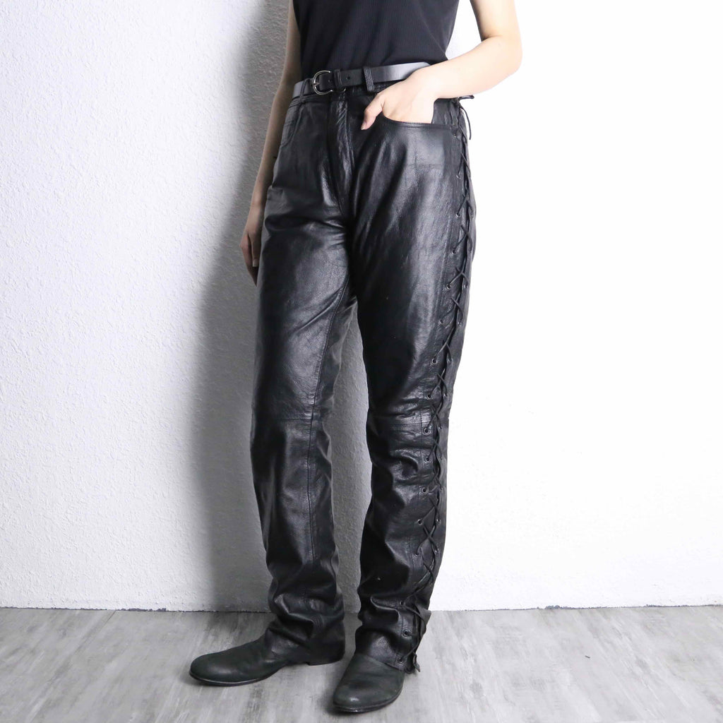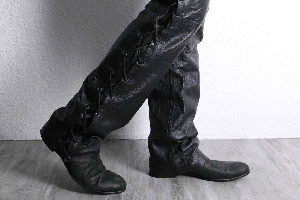 レースアップによるサイドデザインが印象的なレザーパンツの入荷。