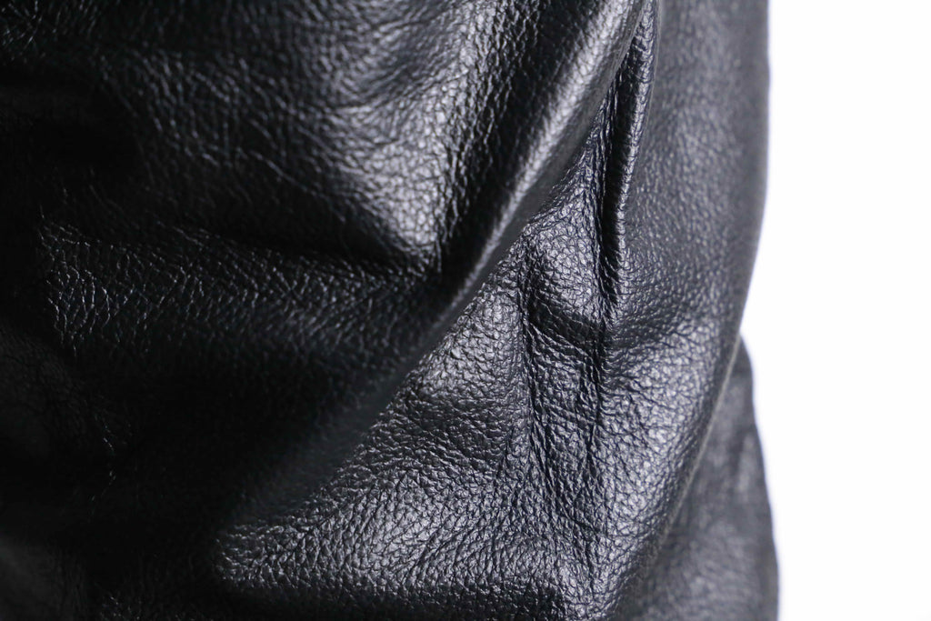 これからの季節一本持っておくとスタイリングの幅が広がりそうなブラックのレザーパンツ。是非この機会に。