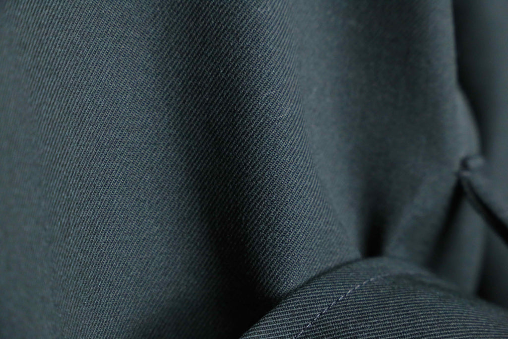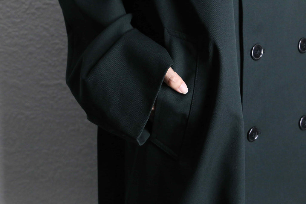 光の受け方1つで黒っぽくも緑っぽくも映るギャバジンならではの素敵な表情、ぜひ纏って感じてみて下さい。