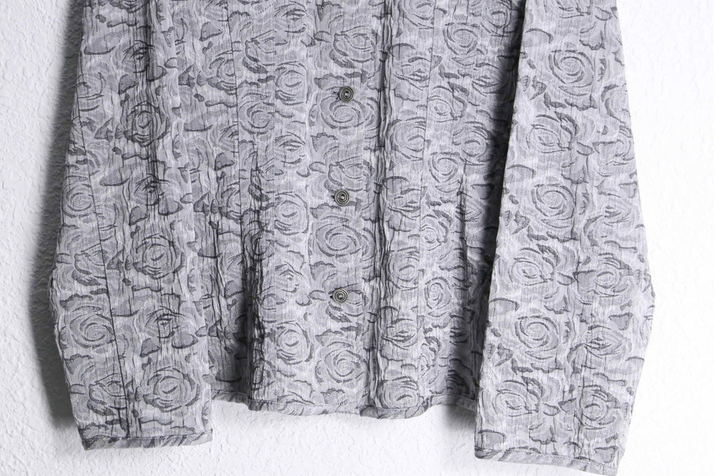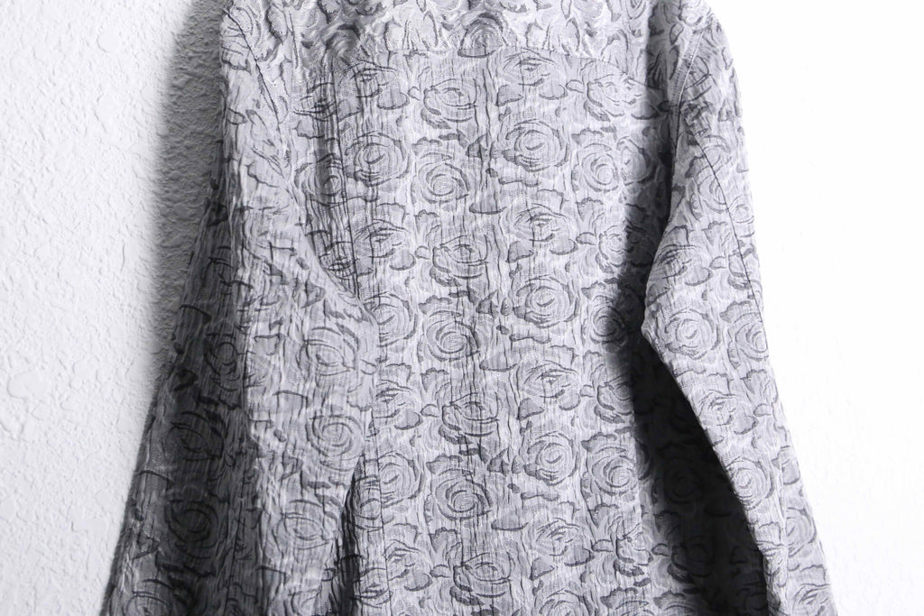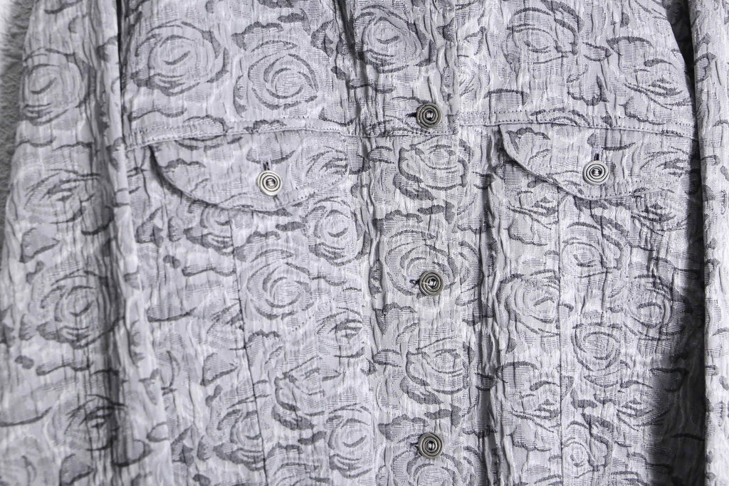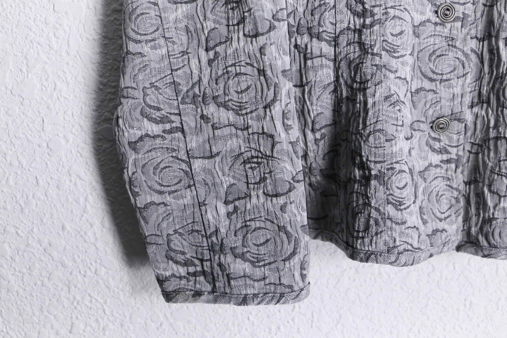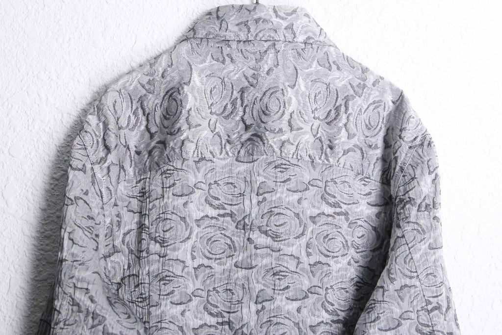 2種のグレーによるジャガード織が上品な雰囲気を醸し出す1着。派手になりがちな薔薇の総柄ですが、同色によるジャガード織で表現する事でスラックスやデニムにサッと合わせられる汎用性にも優れたアイテムとなっています。