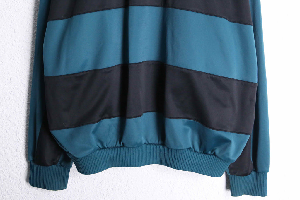 トラックジャケットというジャンルではあまり見たことがないボーダーのデザインが個性的な一着。90年台のアイテムでありながら比較的状態が良く出てきた個体。左袖と後身頃にはパフォーマンスロゴが入りつつ、タグはトレファイルロゴとユニークな仕様。