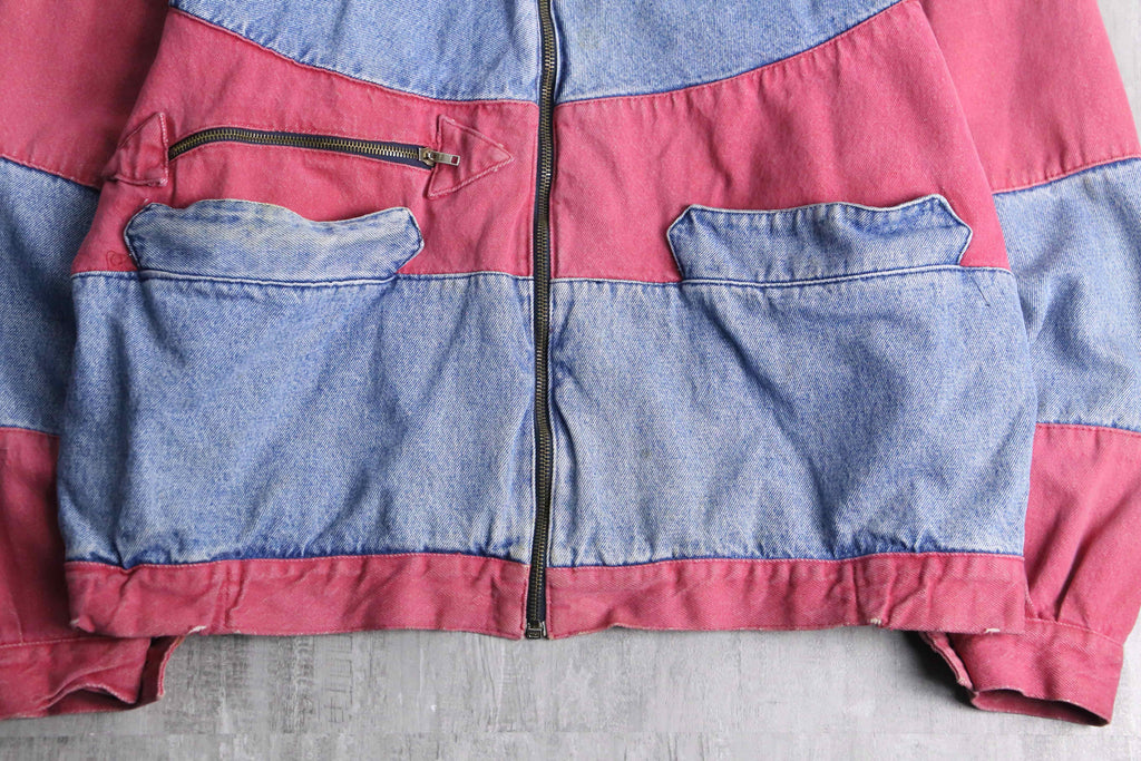 ウォッシュの効いたインディゴとピンクのデニムを繋ぎ合わせてボーダー状にデザインした珍しい1着です。