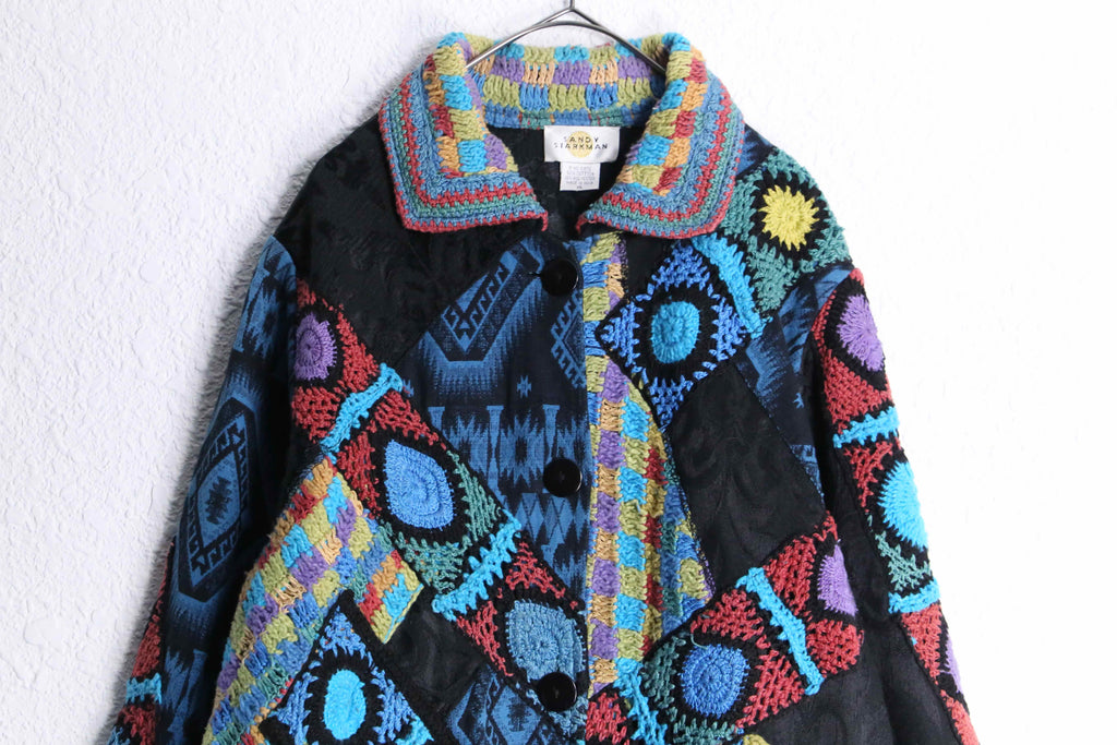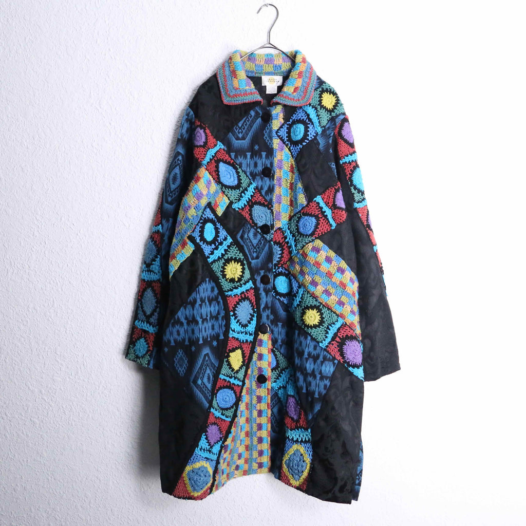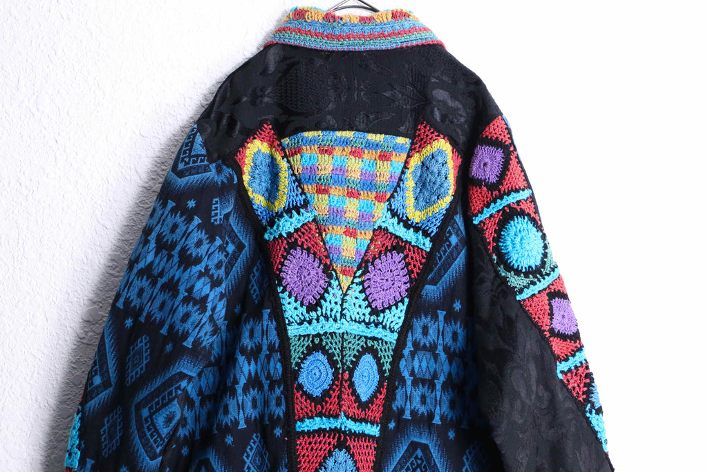 ・tribal mix design gobelin×crochet knit patchwork coat