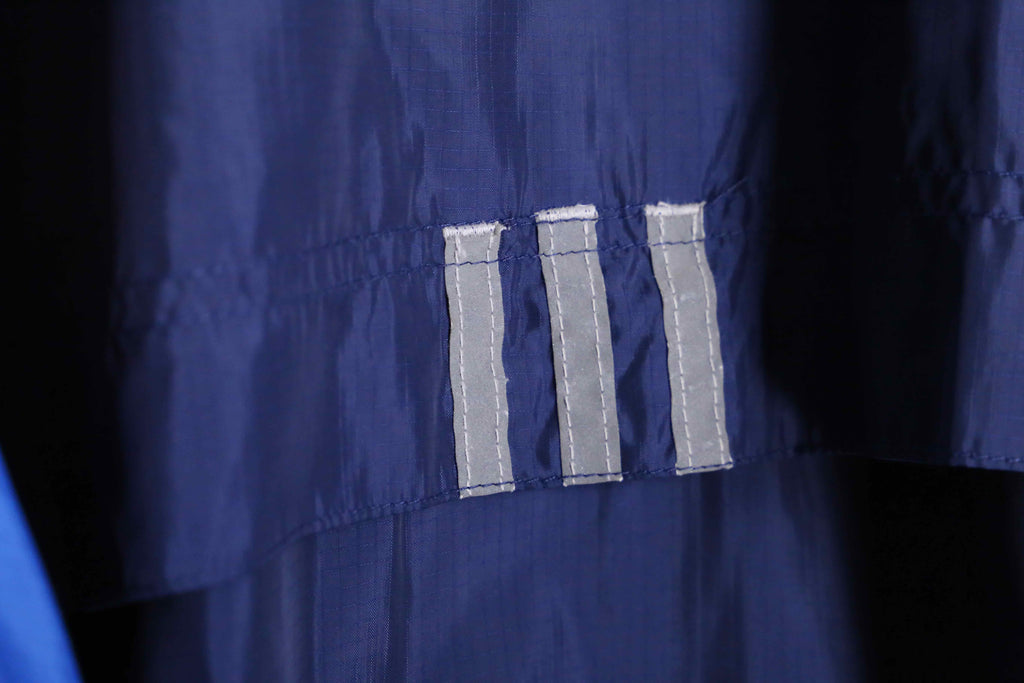 撥水性の良さそうなシャリ感のある寒色ベースの生地にイエローの3本ラインが良いアクセントとして活きていて、ファッションアイテムとして十二分に使っていただけるかと思います。