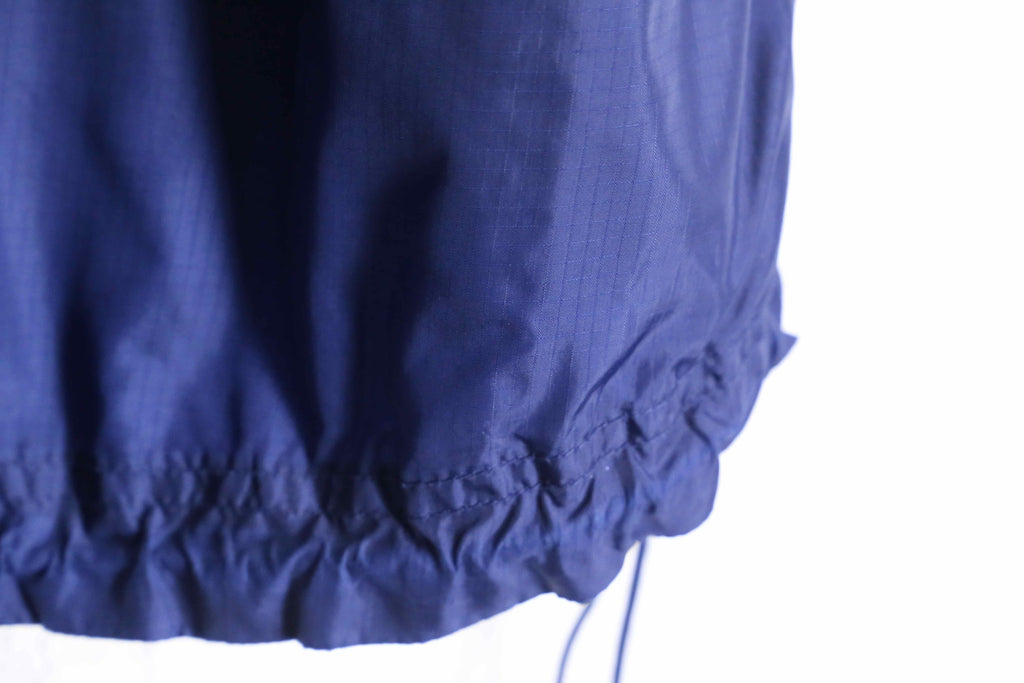 襟元にフードが内蔵され、裾にはドローコード、フロントはジップとスナップボタンの二段構えと機能面についても申し分のない1着。
