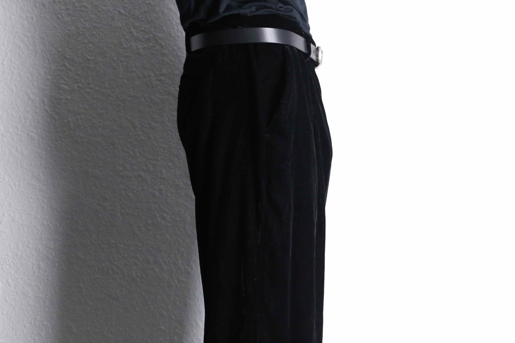 コーデに一つ入れるだけで、上品で高級感のあるスタイリングを実現してくれるベロアアイテム。トップスやジャケットなどに使われる印象がありますが、今回はパンツでのご用意。1タック入ったストレートシルエットは立体感を生み、コーディネートのアクセントに。特にこれからのシーズンでは、素材感から暖かさを感じるベロアは様々なアイテムとの相性が抜群。長めのロングコートの足元から覗かせるスタイリングは極上かと。