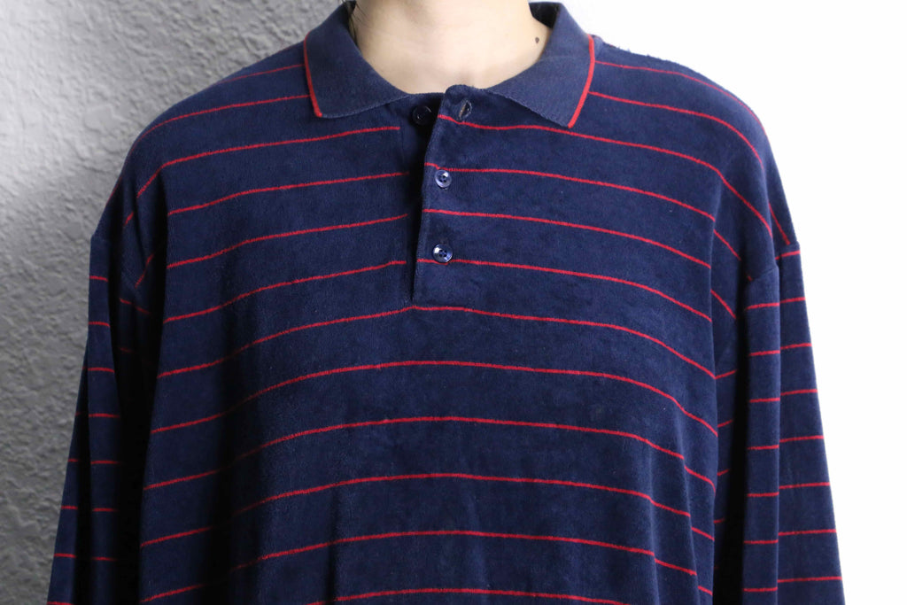 ・navy red horizontal stripe velours polo shirt