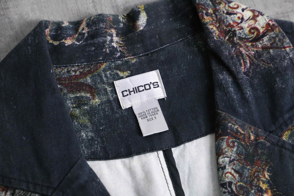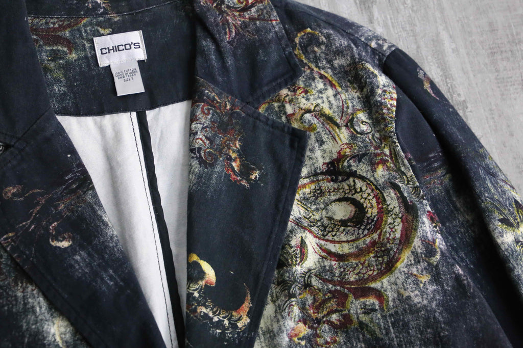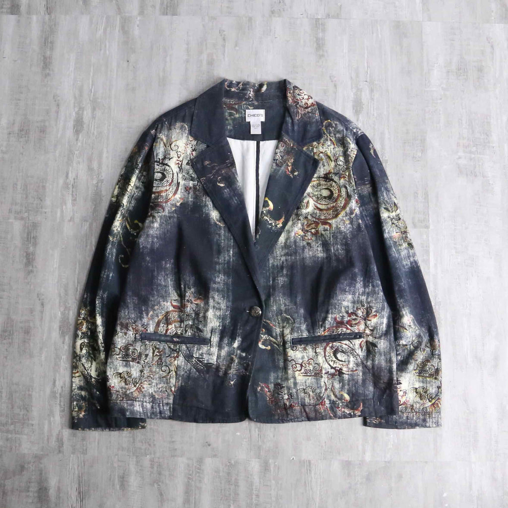 ・"CHICO'S" abstract botanical pattern easy tailored jacket