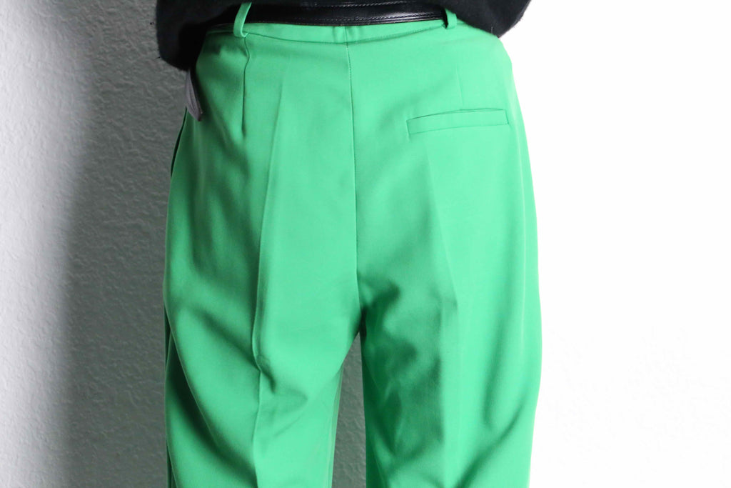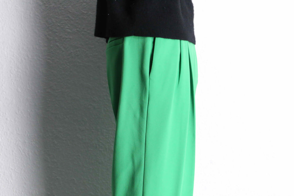 ヒューゴボスが手がける華やかなグリーンカラーのワイドスラックスの入荷です。