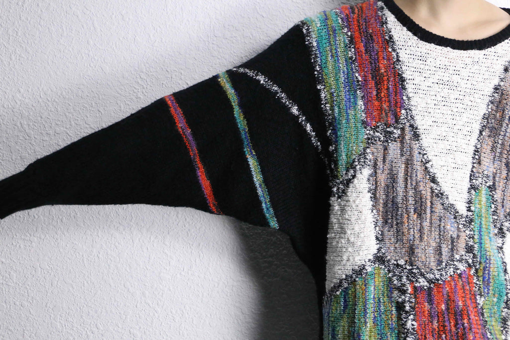 カラフルなニットの切替のドルマンスリーブニットの入荷。