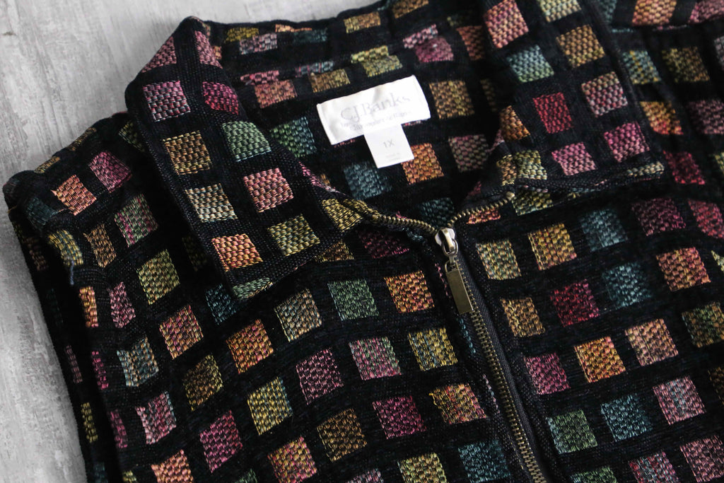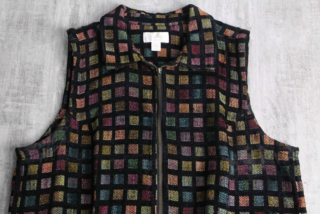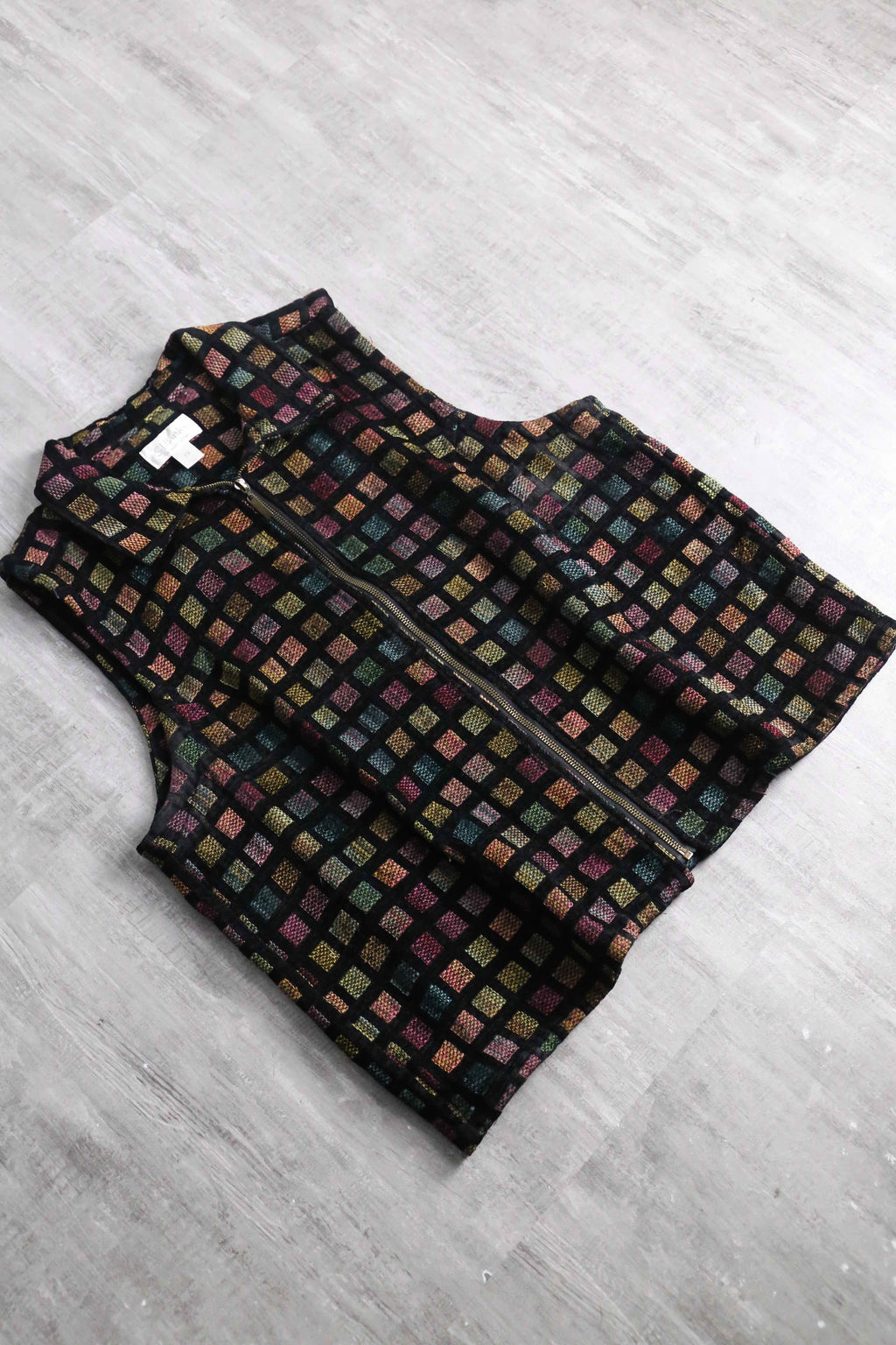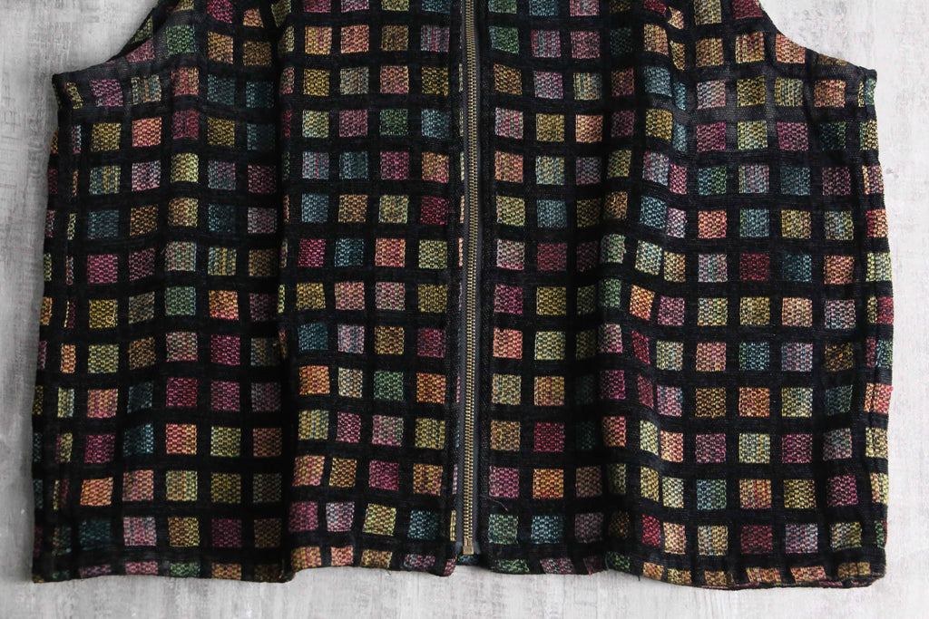 square design front zip jacquard vest