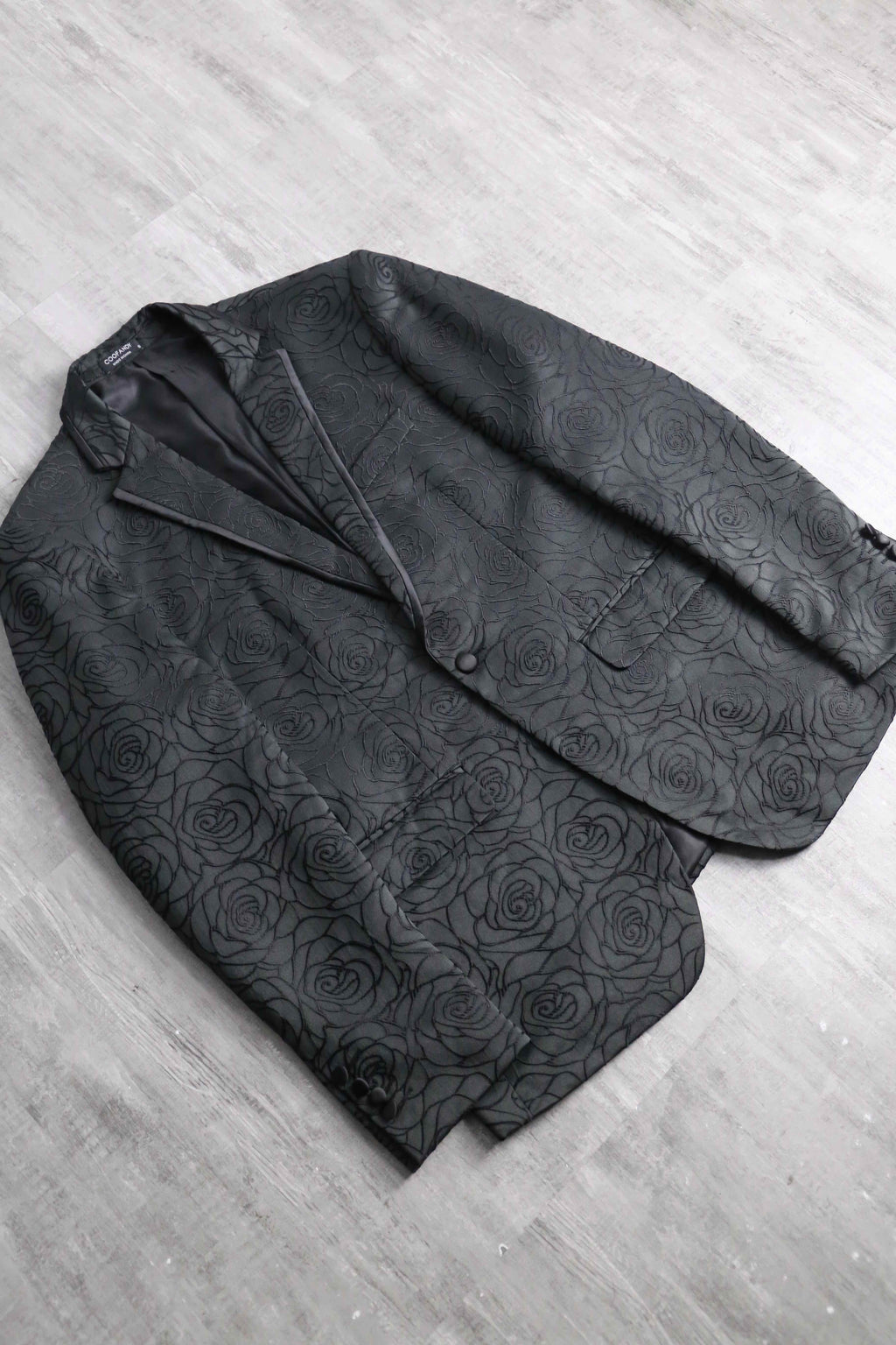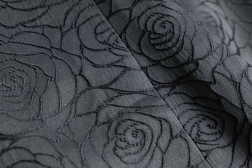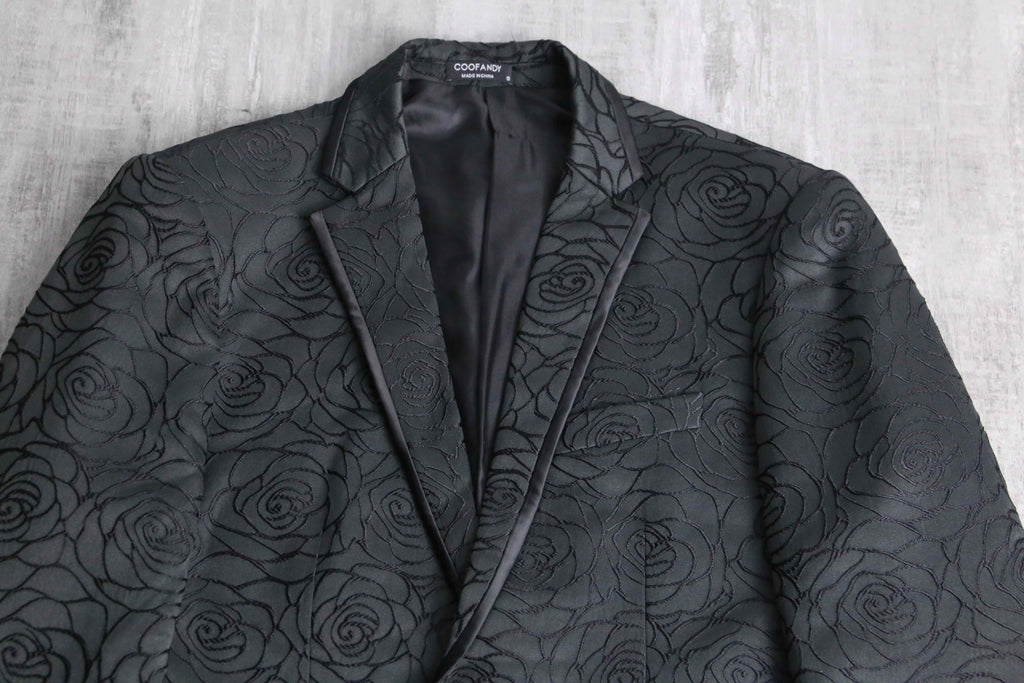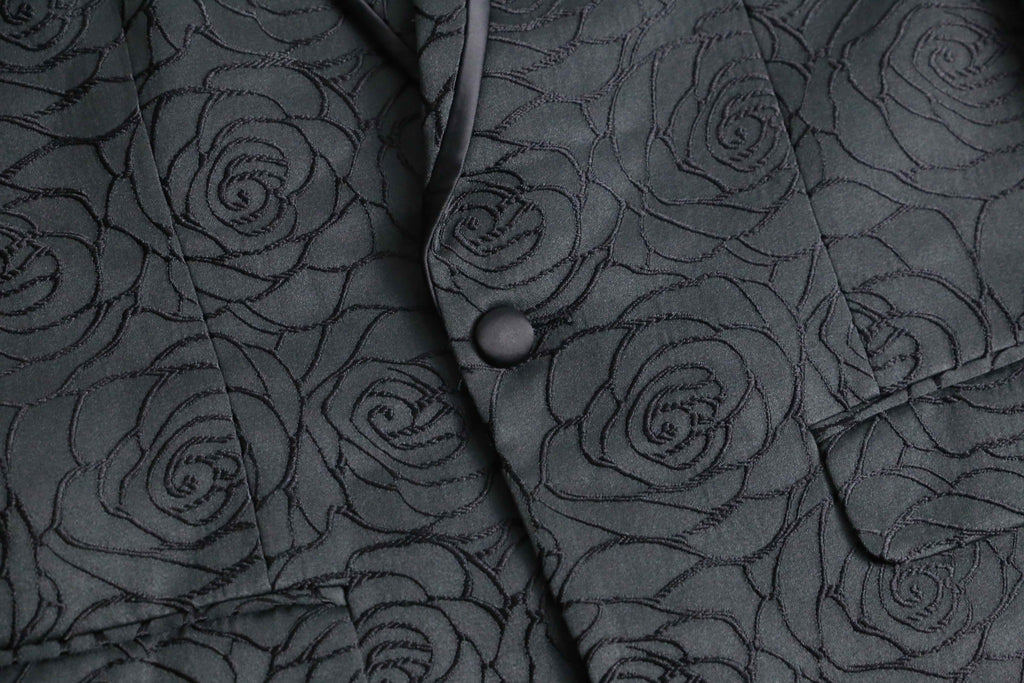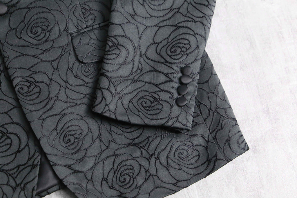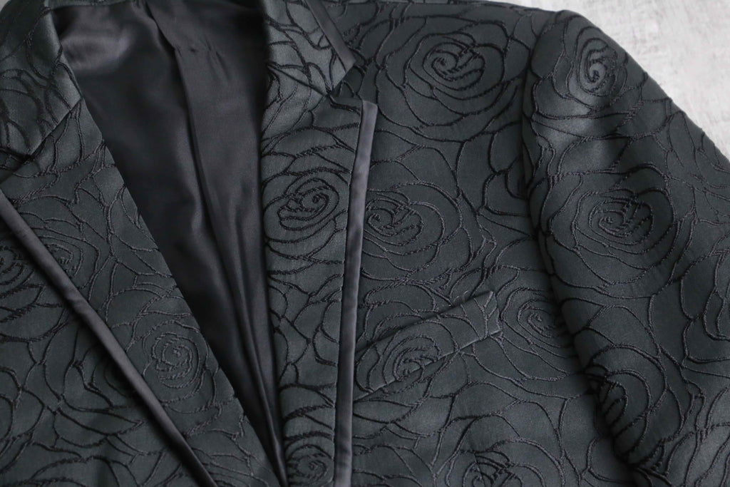黒い薔薇の刺繍が全面に施されたシングル1ボタンのテーラードジャケットの入荷。