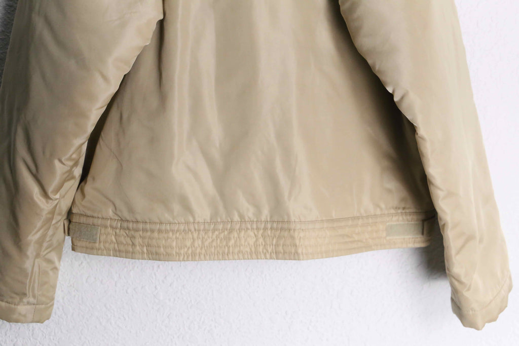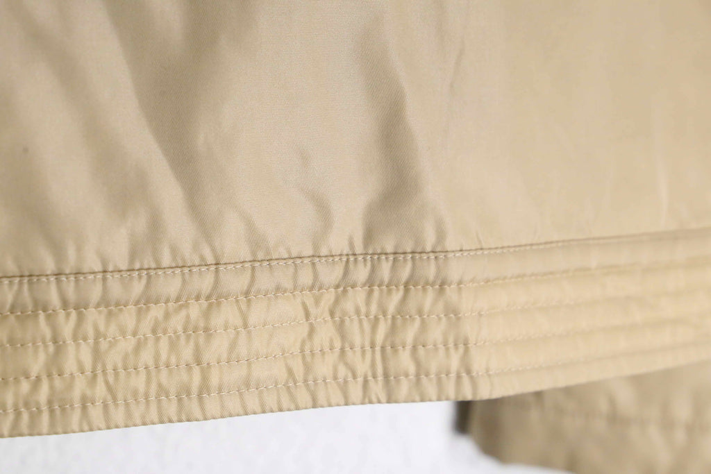 日本でいうスイングトップやブルゾンに近い、ショートでウエスト丈のハリントンジャケット。軽量でかつクラシックなスタイルで、ゴルフジャケットやスポーツウェアとして着用されるものが多い印象。今回の個体も例に漏れず、その部類のアイテムかと。ナイロンとポリウレタンの混紡生地による軽量性と耐久性、インナーのキルティングによる防寒性を兼ね備えた機能性に富んだ1着。立ち襟にチェンジ可能なスナップボタンと、ウエストを絞れるサイドのベルクロも非常にありがたいポイント。
