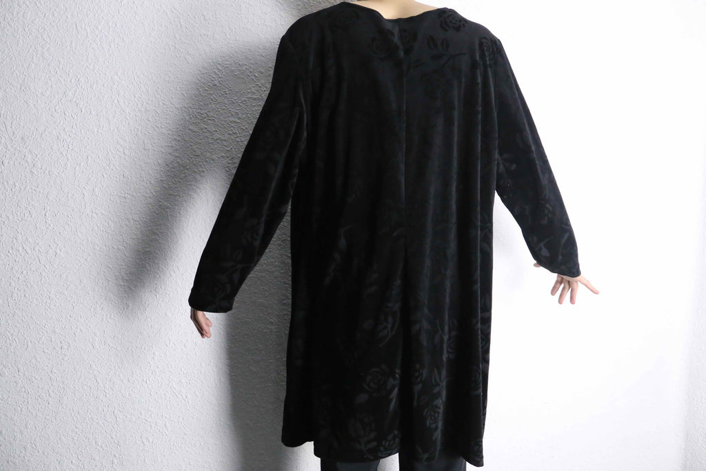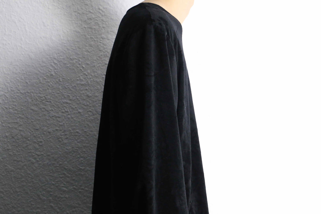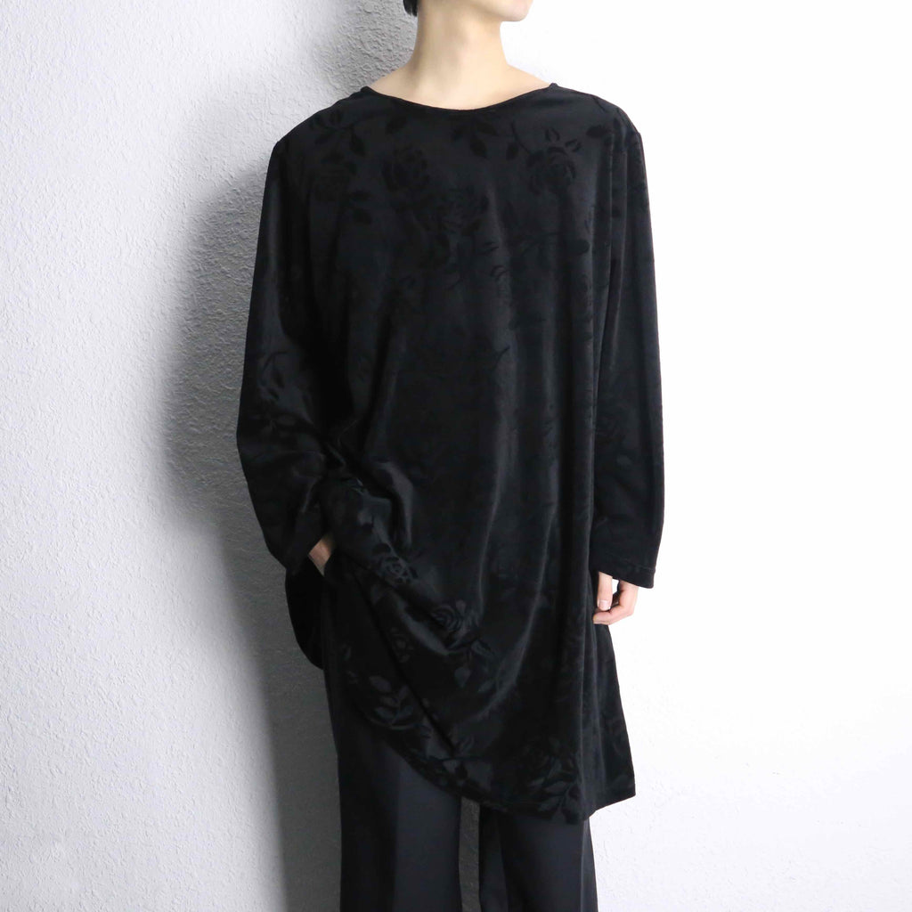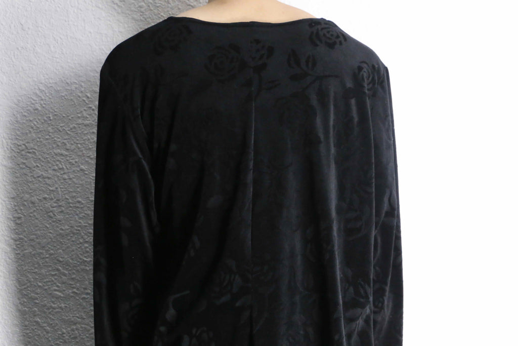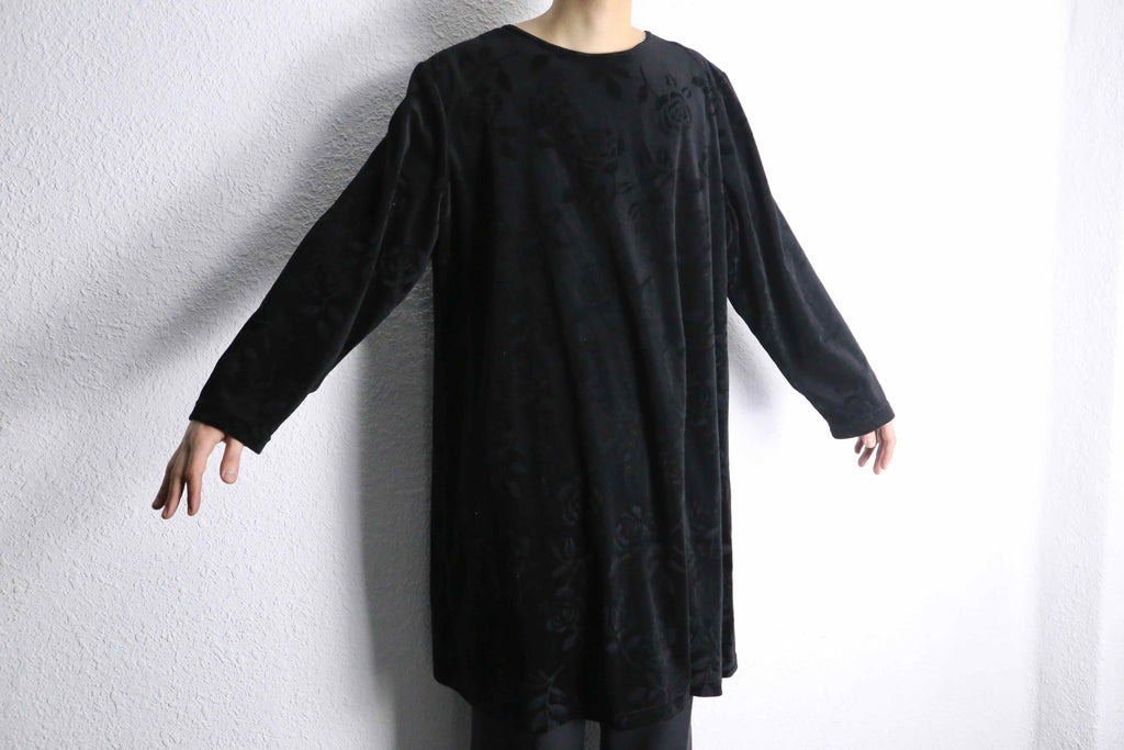 ベロアボディに影の様に薔薇のデザインが施されたルーズトップス。ワンピースとしても成立してしまう着丈の長さが特徴的で、襟ぐりの広さも推しポイント。アイテムの状態もかなり良く、希少性の高い逸品。
