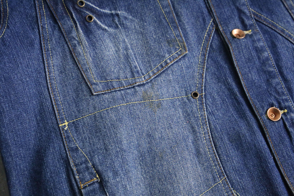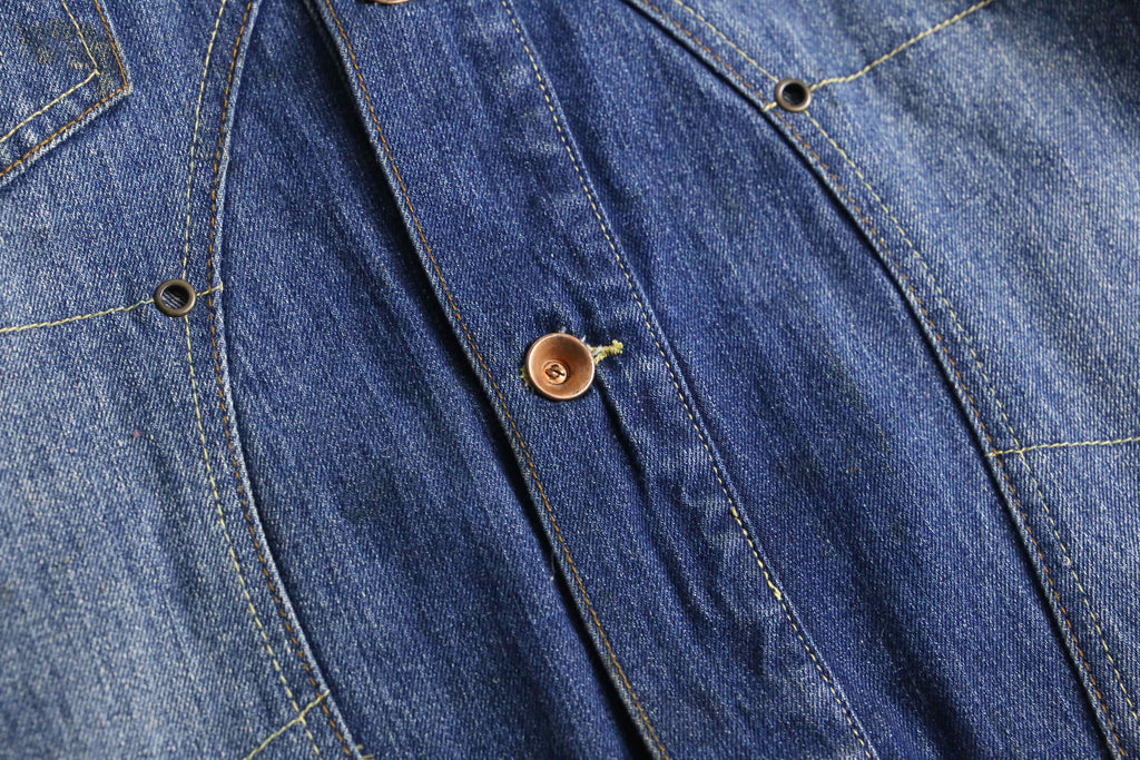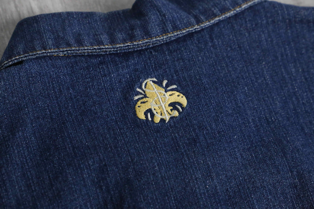 程よく厚みのあるデニム生地を使用し、着込むほどに風合いが増していく一着。フロントには立体的なポケットを配置し、ワークテイストを感じさせる実用的なディテールが特徴。胸元のロゴ刺繍やバックのレザーパッチがさりげないアクセントとなり、ブランドらしいストリート感をプラス。フェード感のある色落ち加工が、こなれた表情を演出。身幅にゆとりを持たせたシルエットで、スウェットやフーディの上からも羽織りやすく、レイヤードスタイルにも最適。