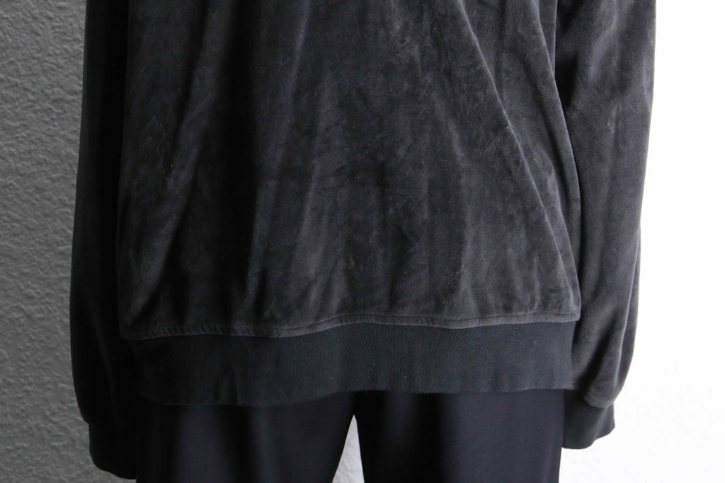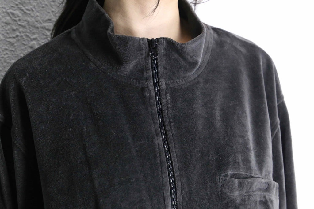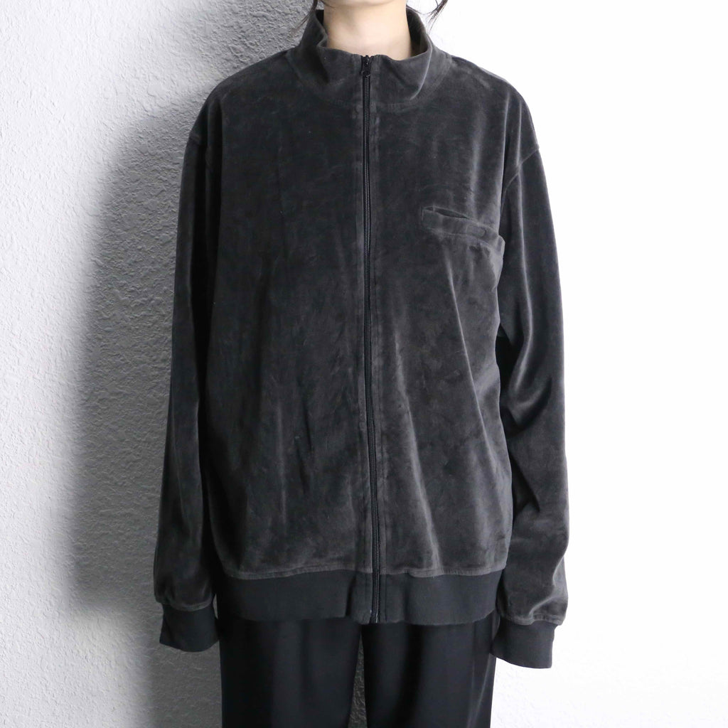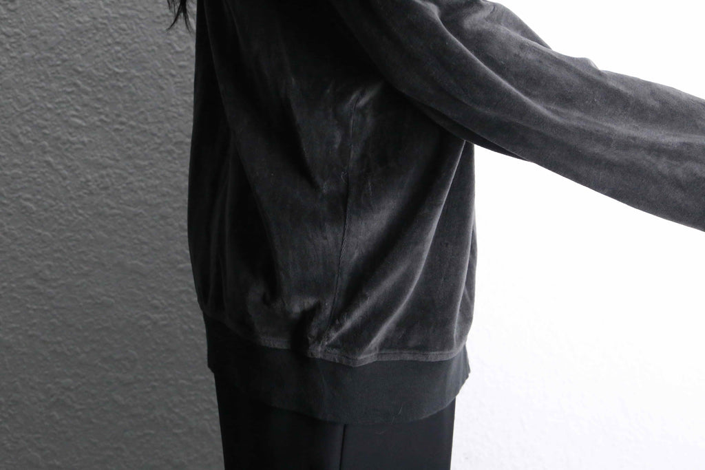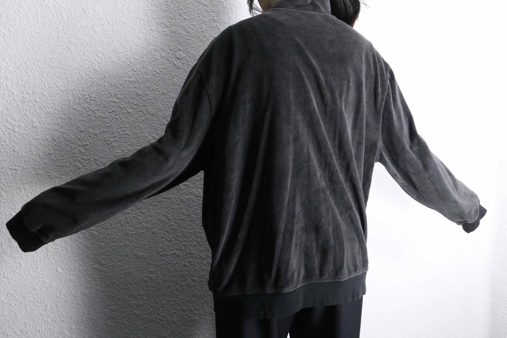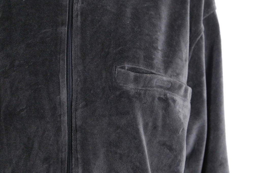 ブラックとグレーの中間色が毛足のあるベルベット素材特有のしっとりした光沢を纏い、カジュアルながらもどこか品のある仕上がりとなった1着。黒スラックスはもちろん、デニムや春カラーのボトムスなどとも相性抜群のお色味です。