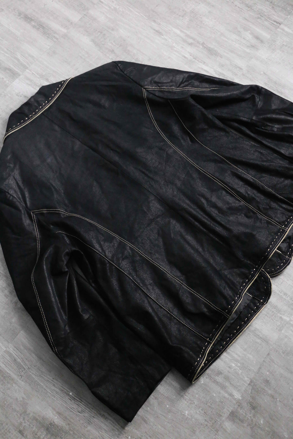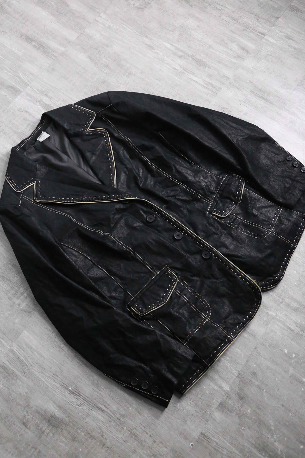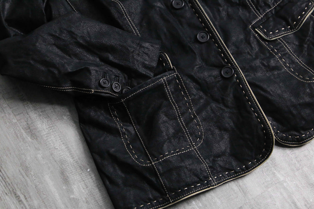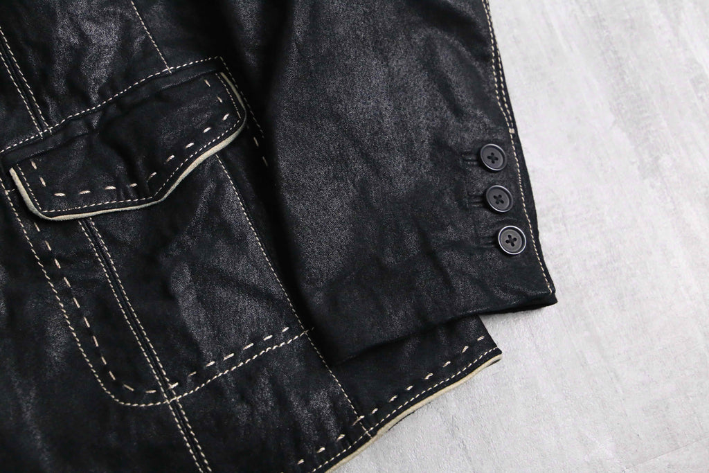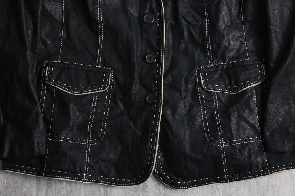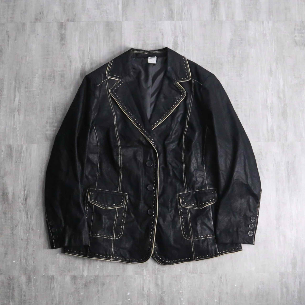 ・black stitch design leather single tailored jacket