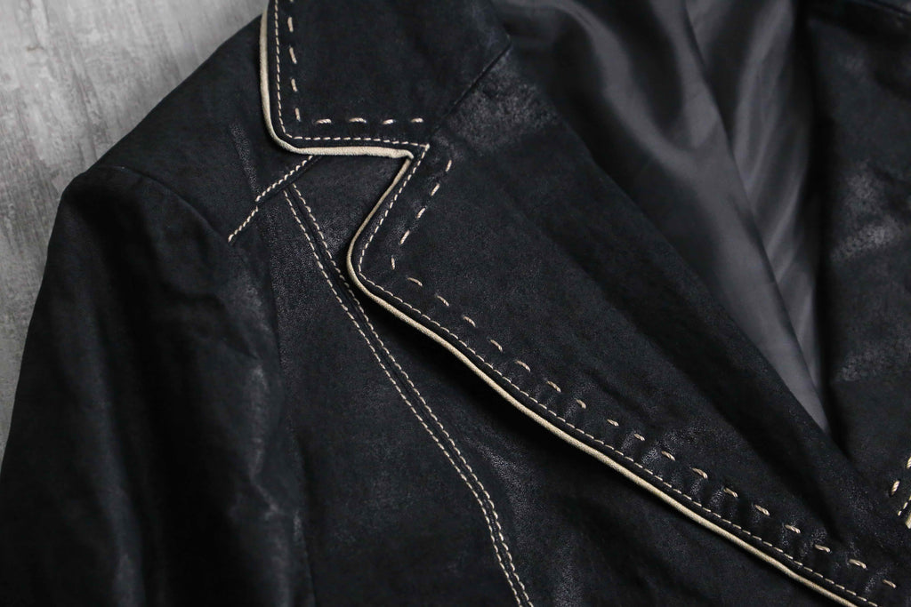 black stitch design leather single tailored jacket