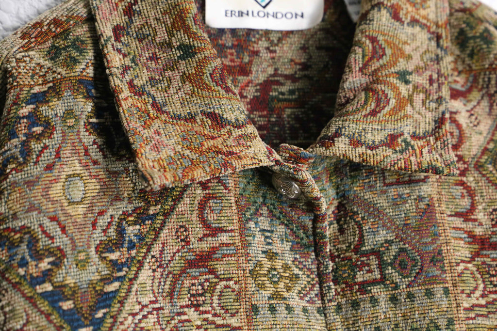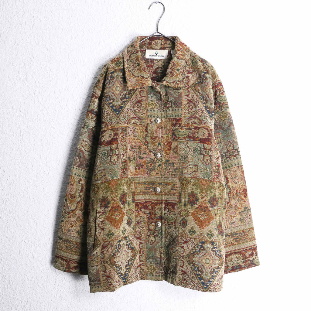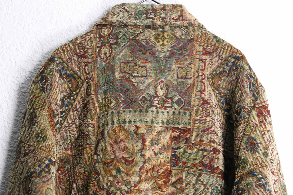 幾何学模様やボタニカルなど、エスニックデザインを全面に施した総柄ゴブランジャケットの入荷。