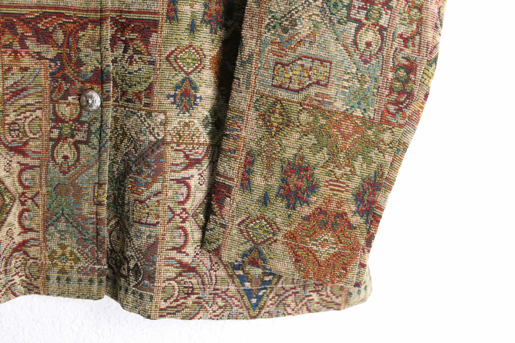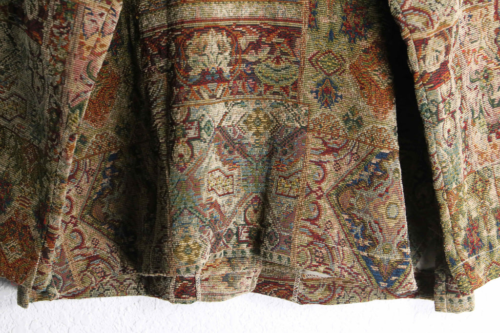 ゴブランやジャガードといったエスニックアイテム好きには堪らない1着。個人的にレーヨンポリ混紡も面白いところ。是非。