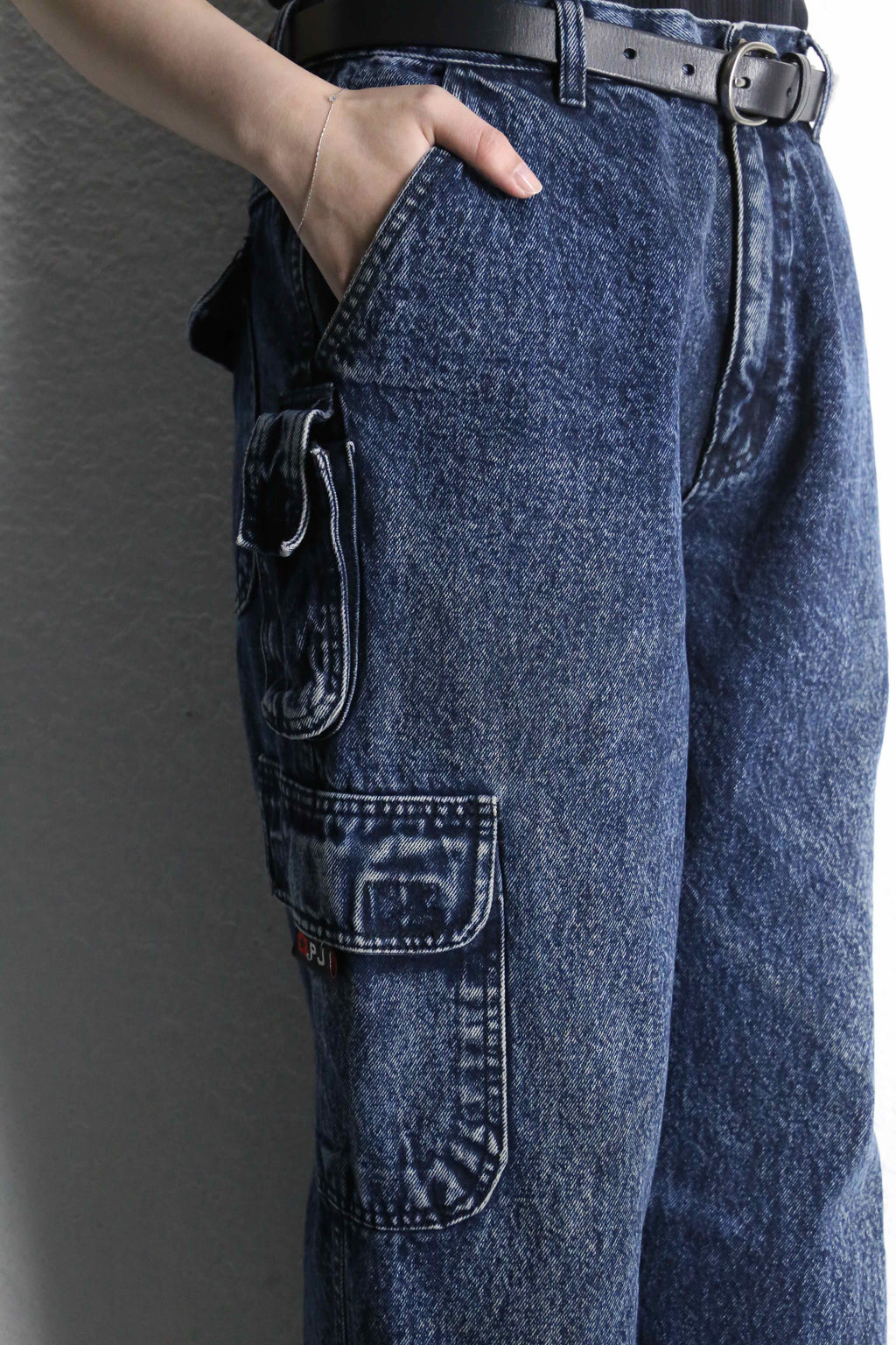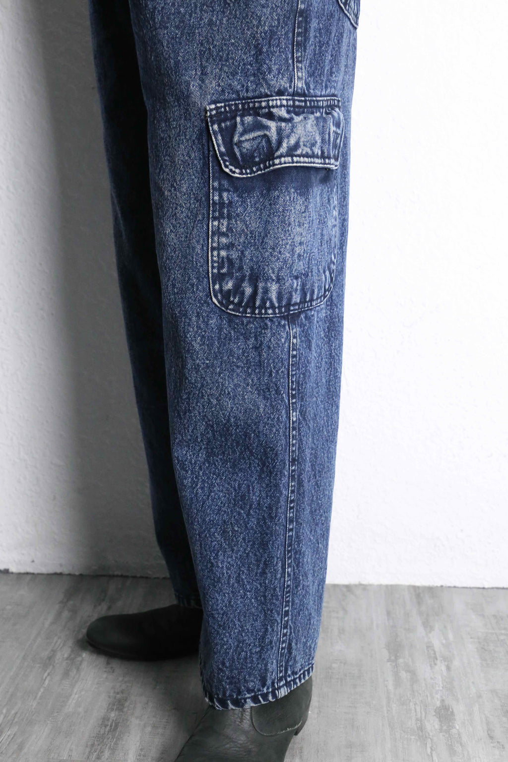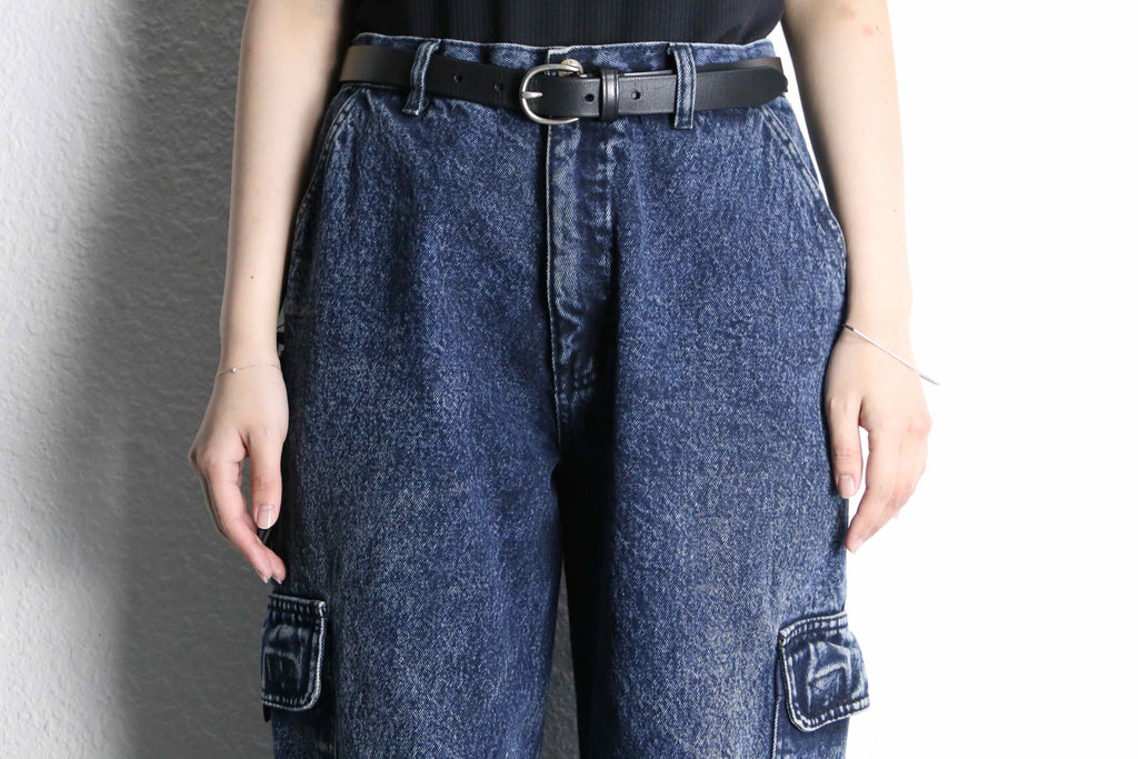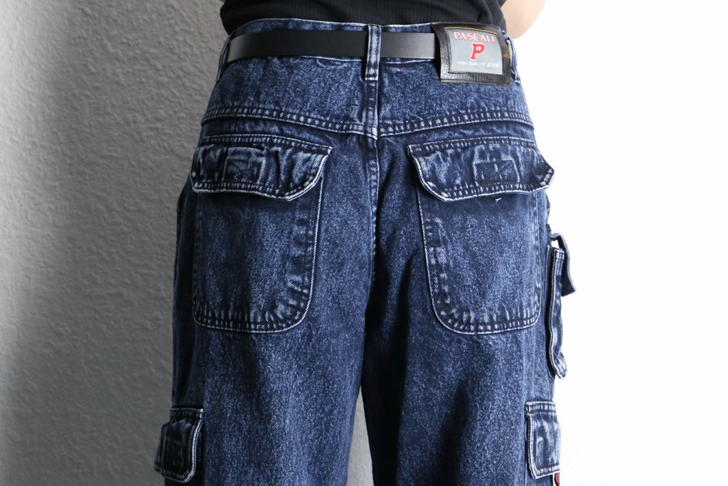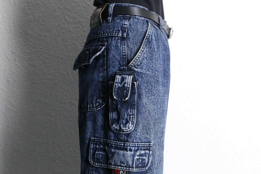 snow washed wide cargo denim pants