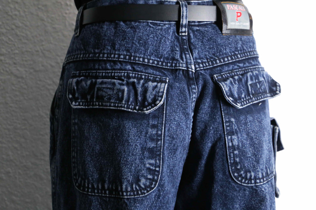 全体に広がるスノーウォッシュが、特徴的なワイドカーゴデニムパンツの入荷。