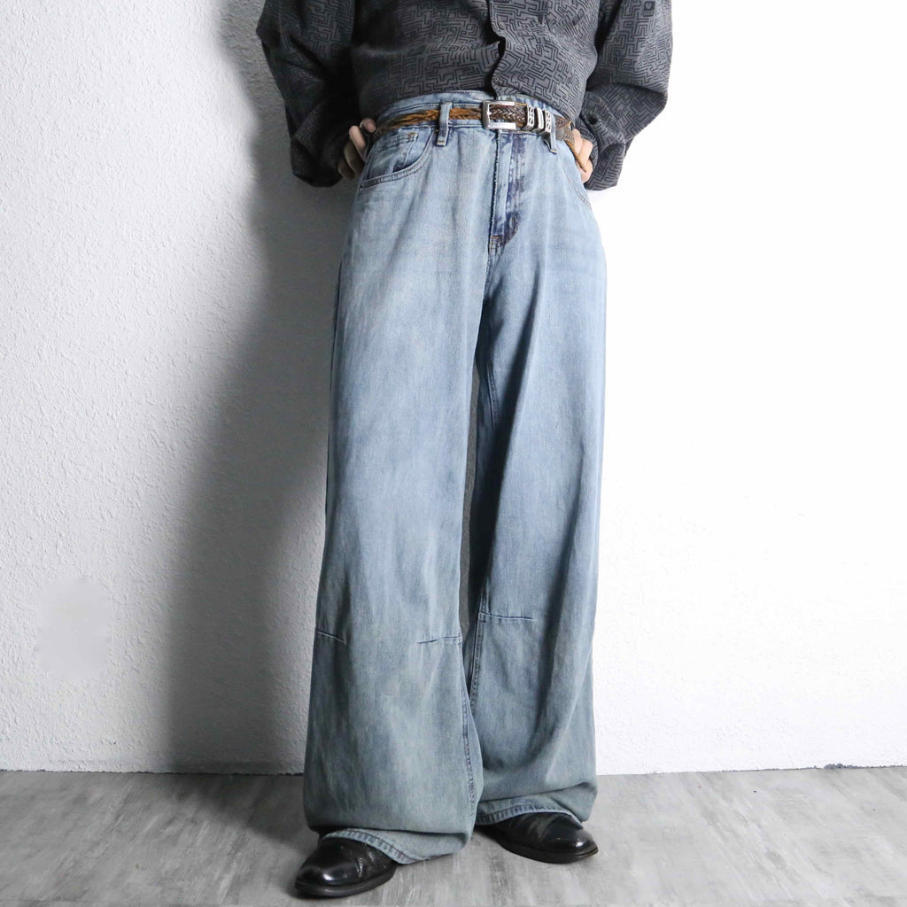 fade indigo wide buggy denim pants