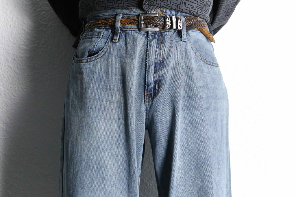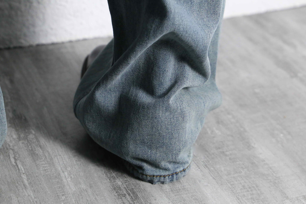 シルエットはしっかりと太さを持たせたワイドストレート。腰回りはすっきりと収まりつつ、裾にかけてストンと落ちる美しいラインが特徴的。そこに加え、独特なフェード。昨今流行りのメリハリのあるスタイルにもぴったりなアイテム。