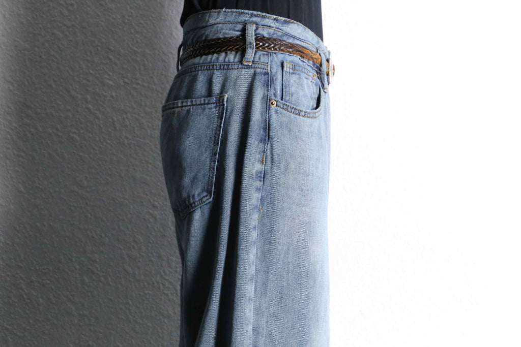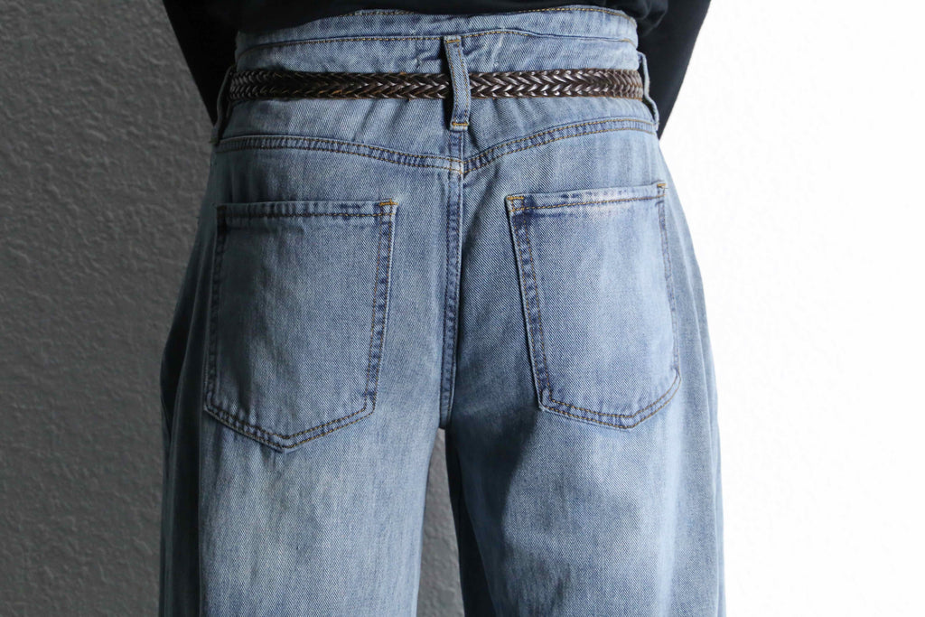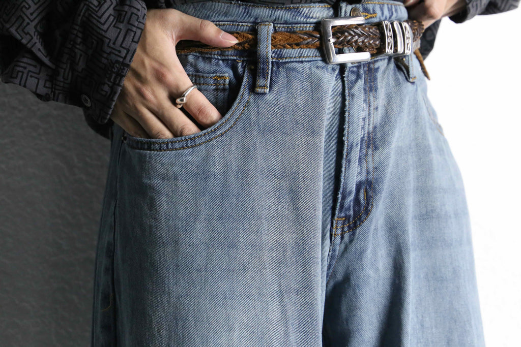 淡くフェードした色落ちが印象的なワイドデニムパンツが入荷。