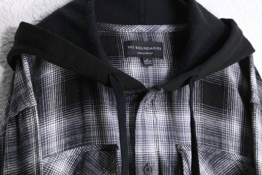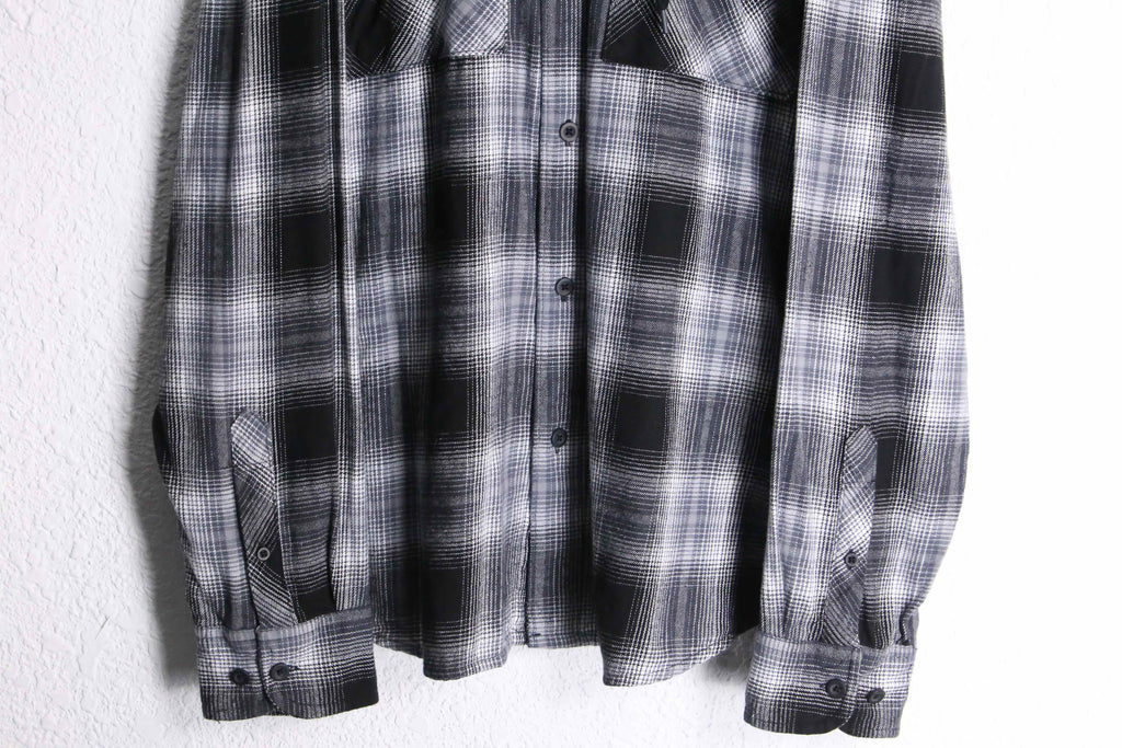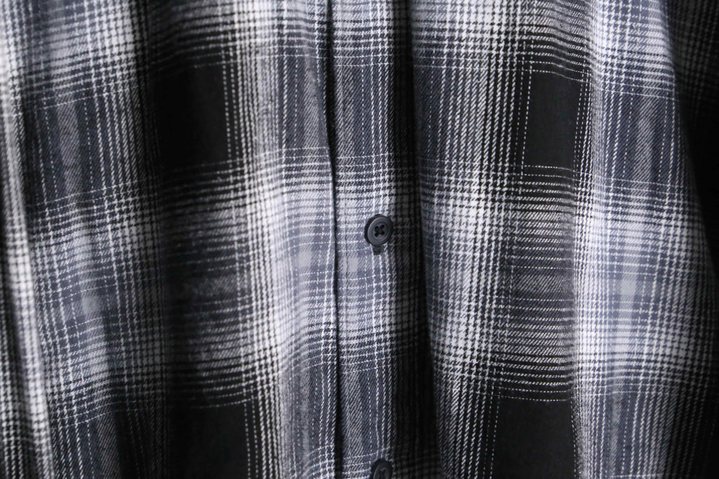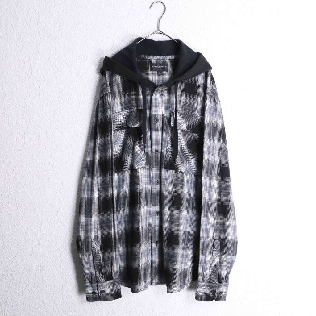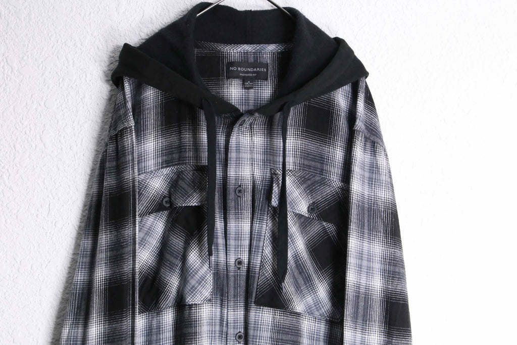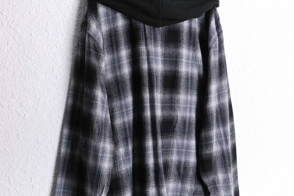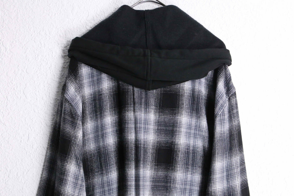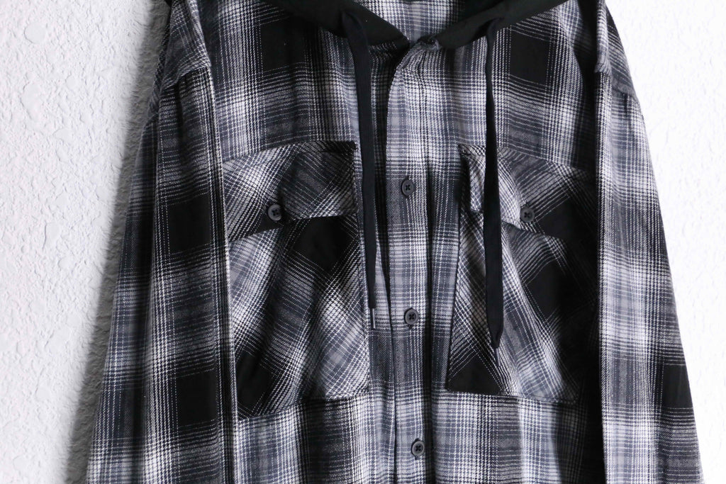 モノトーンの落ち着いたトーンで仕上げられたチェック柄シャツフーディーがオンラインに登場。