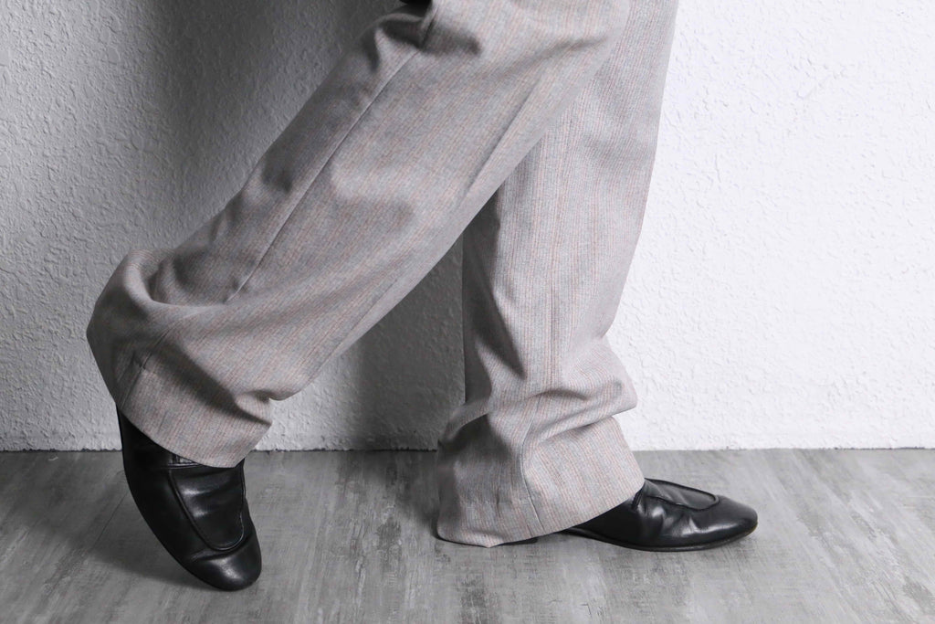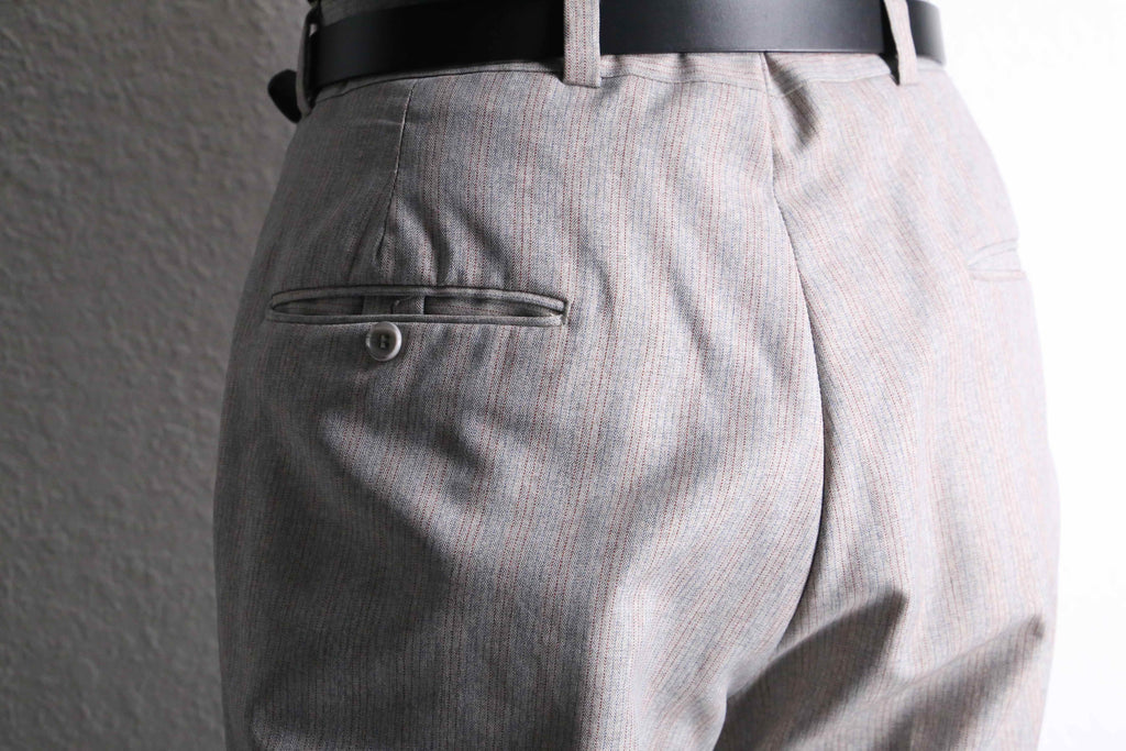 クラシックなスラックスの雰囲気に、ストライプの遊び心が加わることで、オンオフ問わずスタイリングを楽しめるのも魅力。