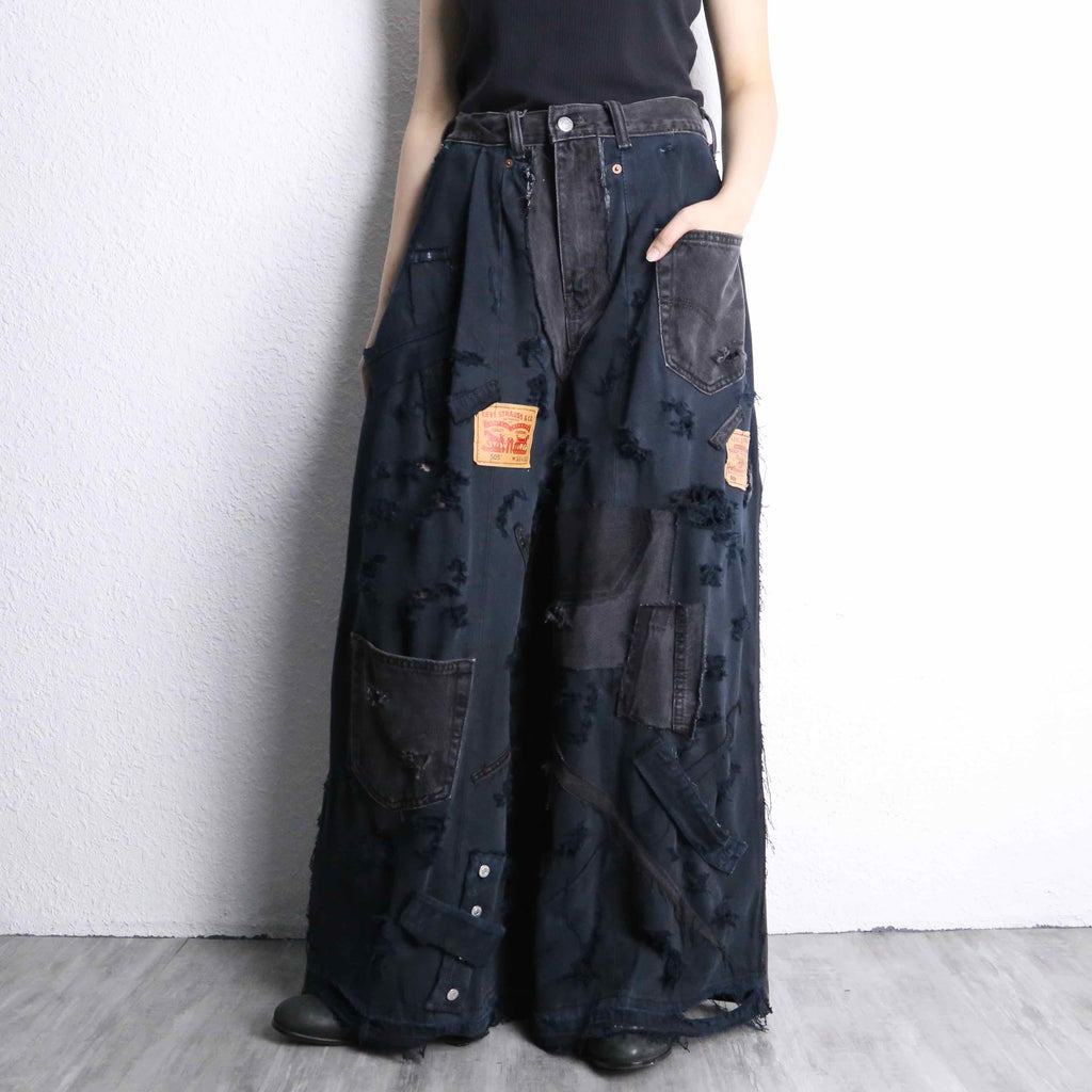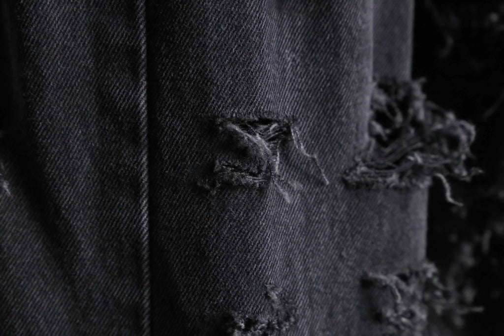 一目見ただけでもそのインパクトは絶大。また、細部にまでボロ加工等のデザインを施しているために昨今のトレンドとも相性は良く、パンツに比重がかかっていくこれからのシーズンに活躍間違いなしの逸品。この機会に是非。