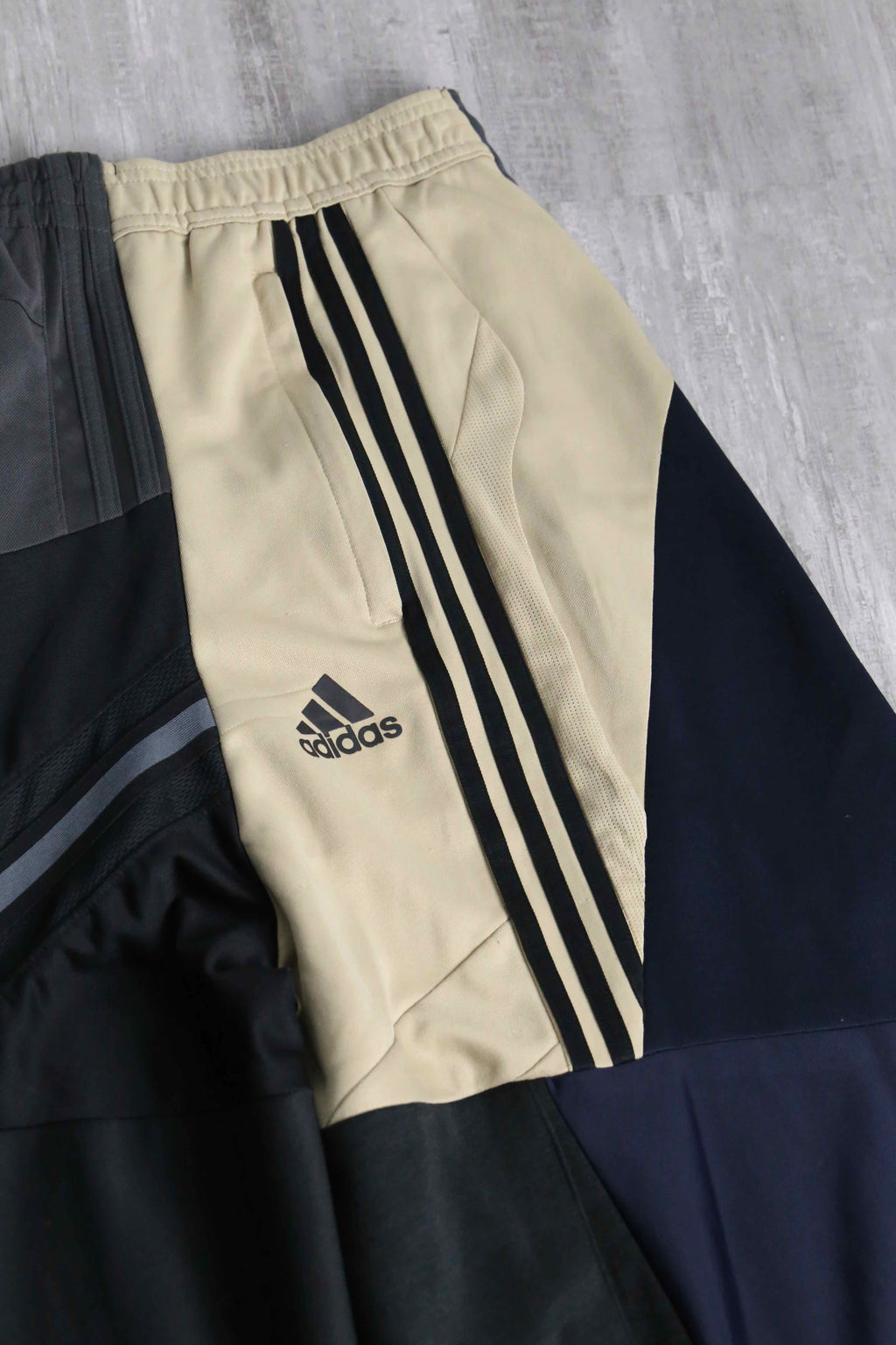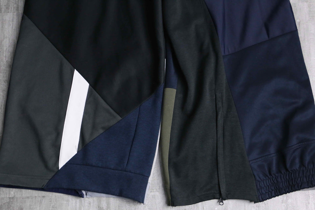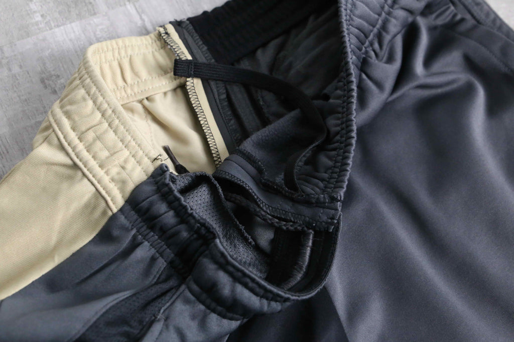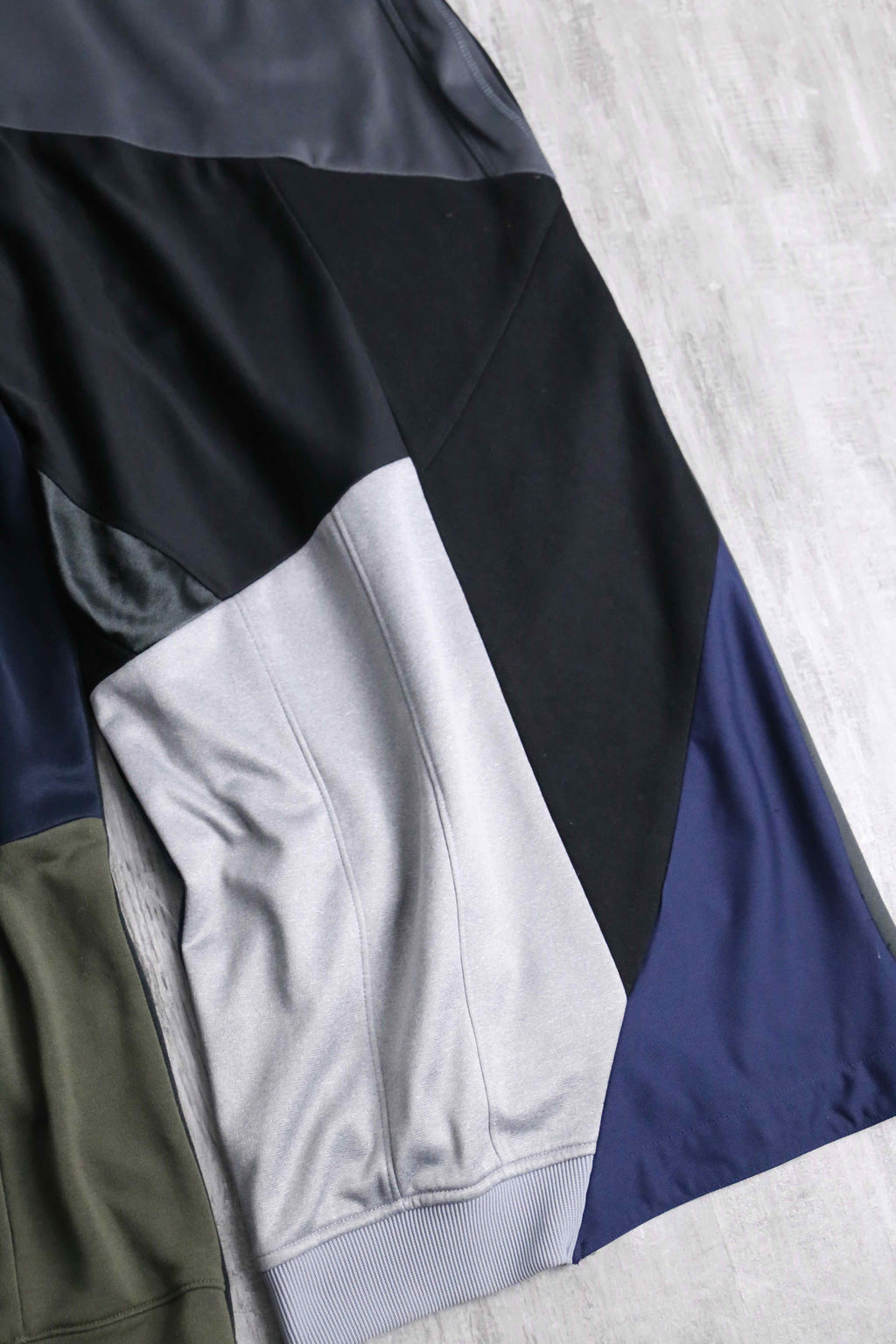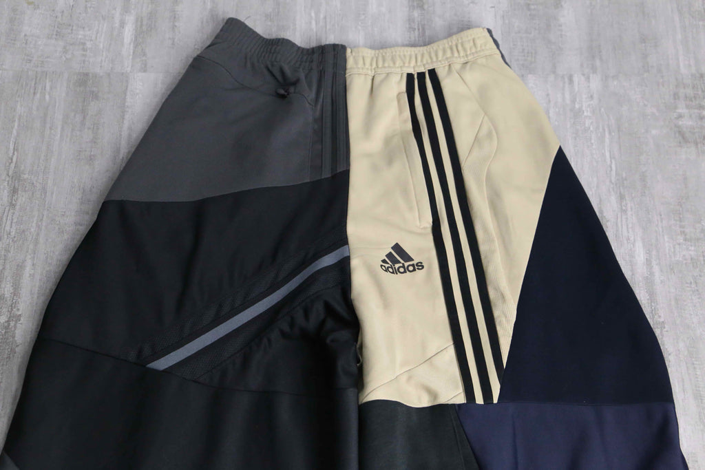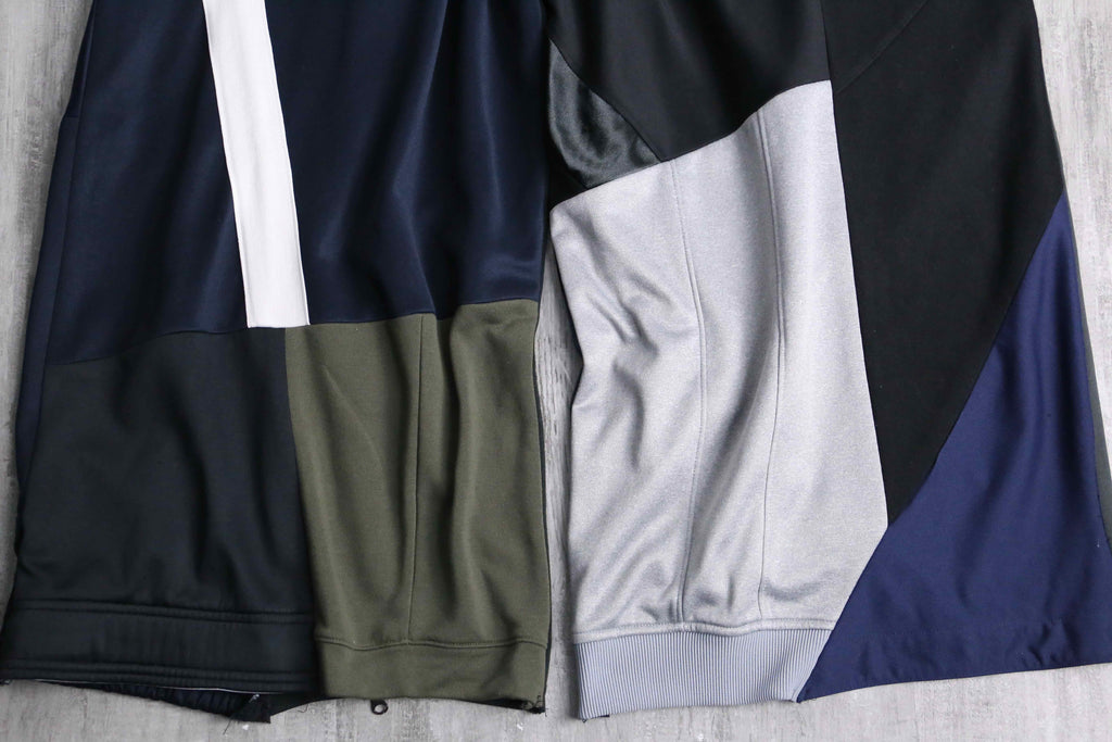 4本のトラックパンツを再構築して仕立てられたリメイク袴パンツ。