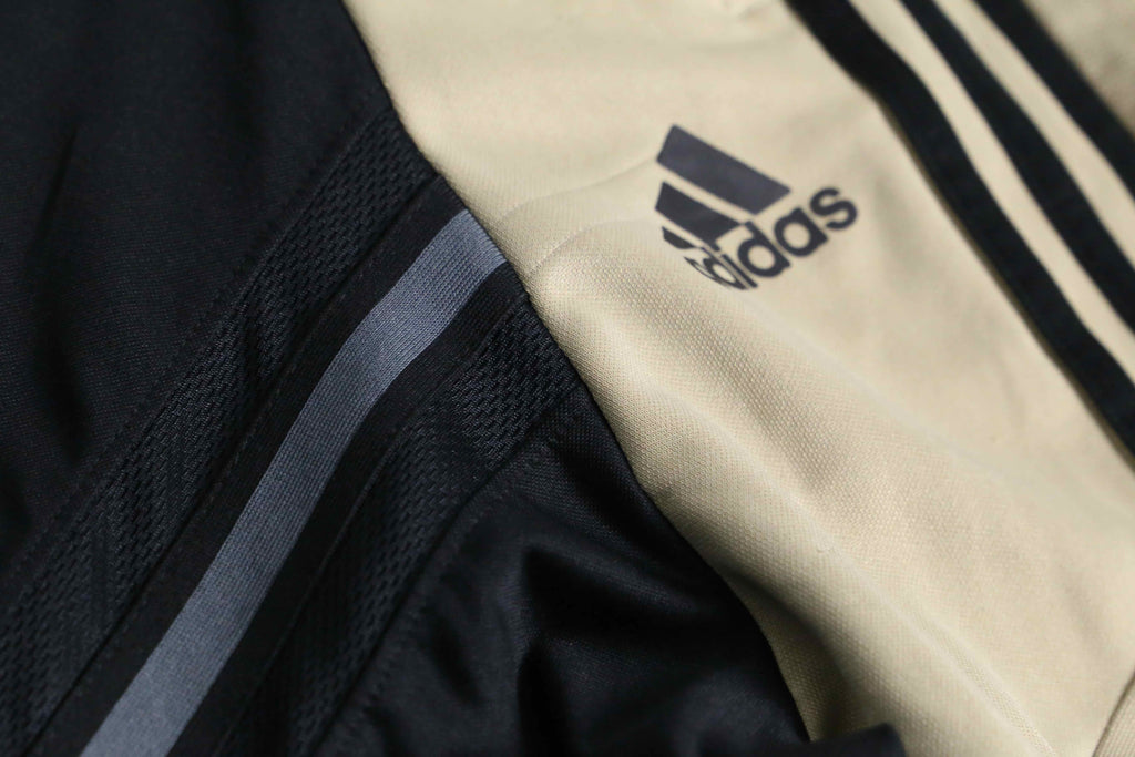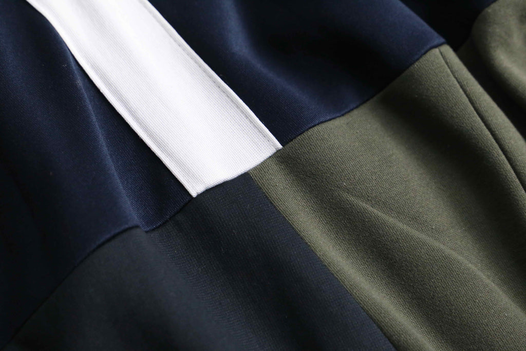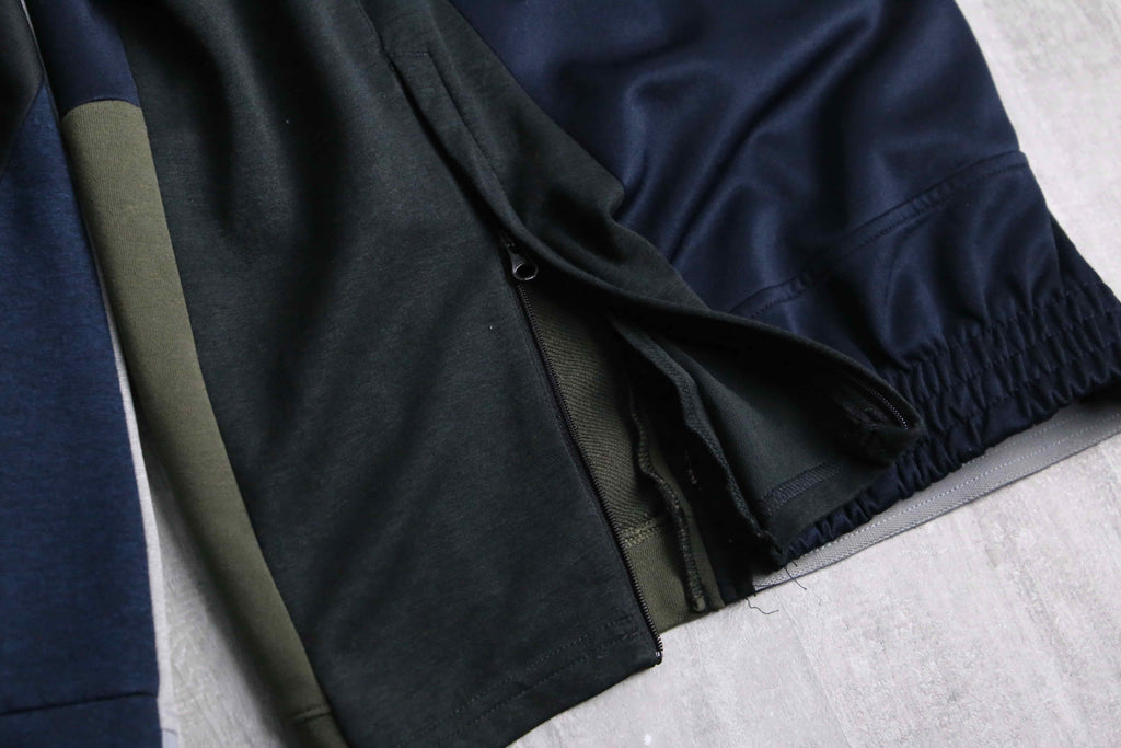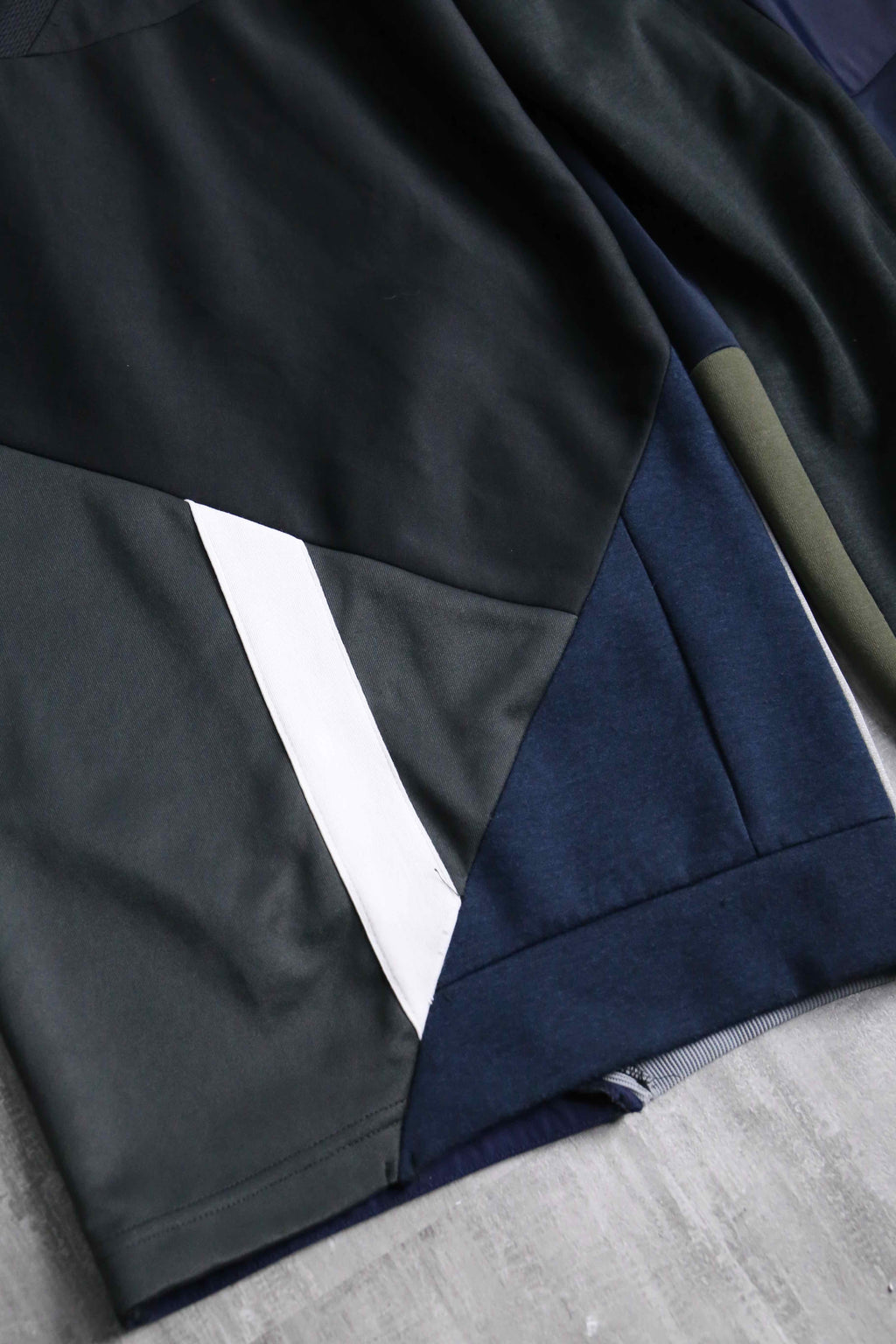 グレーやブラック、ネイビー、カーキといった色味を幾何学的に切り替えたデザインは、唯一無二の存在感を放ちます。