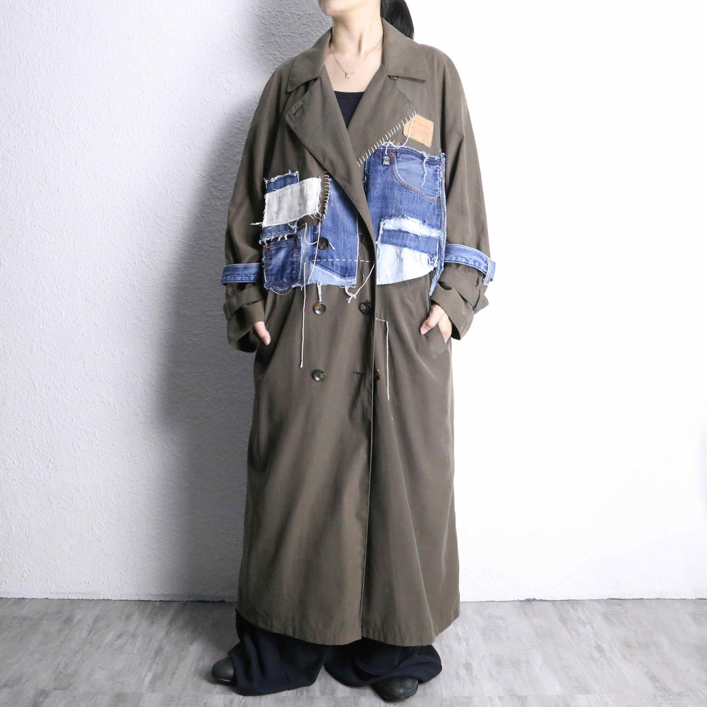 ''Re:make''denim patchwork long coat