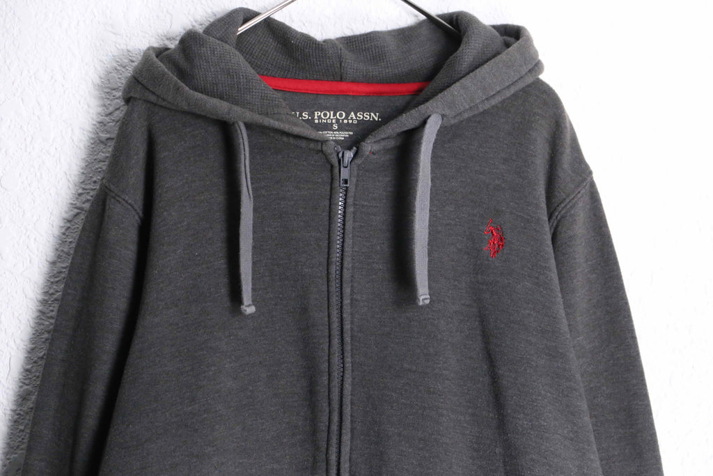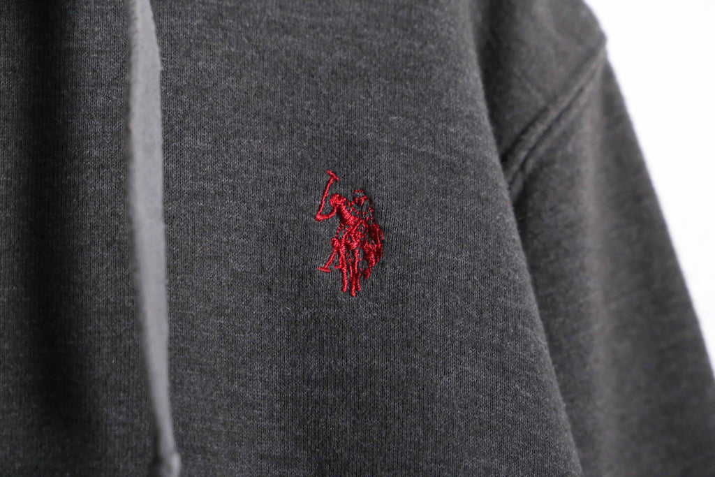 “U.S. POLO ASSN” charcoal cotton waffle detail zip-up hoodie