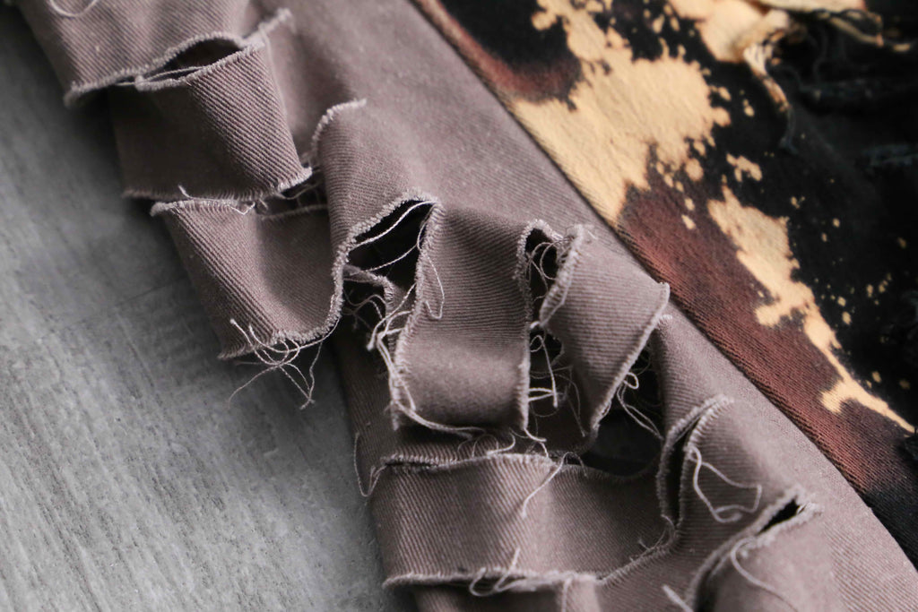 フロント全体に施されたブリーチ加工は、一点ごとに異なる模様を描き出し、アート作品のような表情を楽しめます。