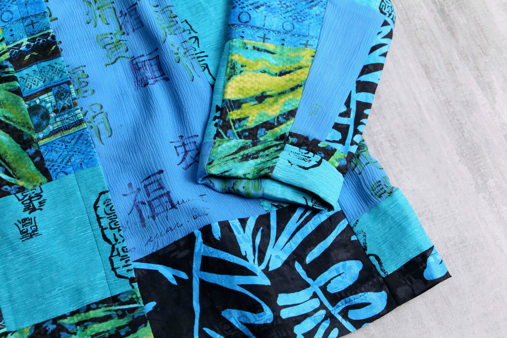 デザイン性の強さから当グループでも力強く仕入れているCHICO'S 。今回は爽やかな色合いで構成された薄手のジャケット。プリントではなくしっかりパッチワークされたデザインはチコズらしい手の込んだデザインです。