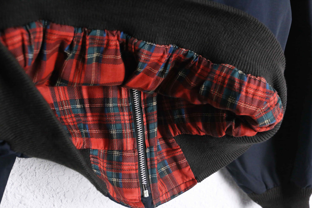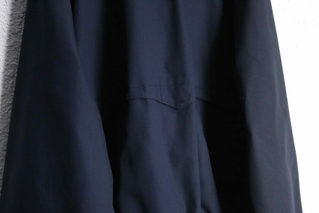 おそらく軽量でハリのあるポリエステル×コットン素材を使用しており、さらっと羽織れる快適な着心地。内側にはチェック柄のライニングを採用し、見えない部分にもこだわりを感じる一着です。