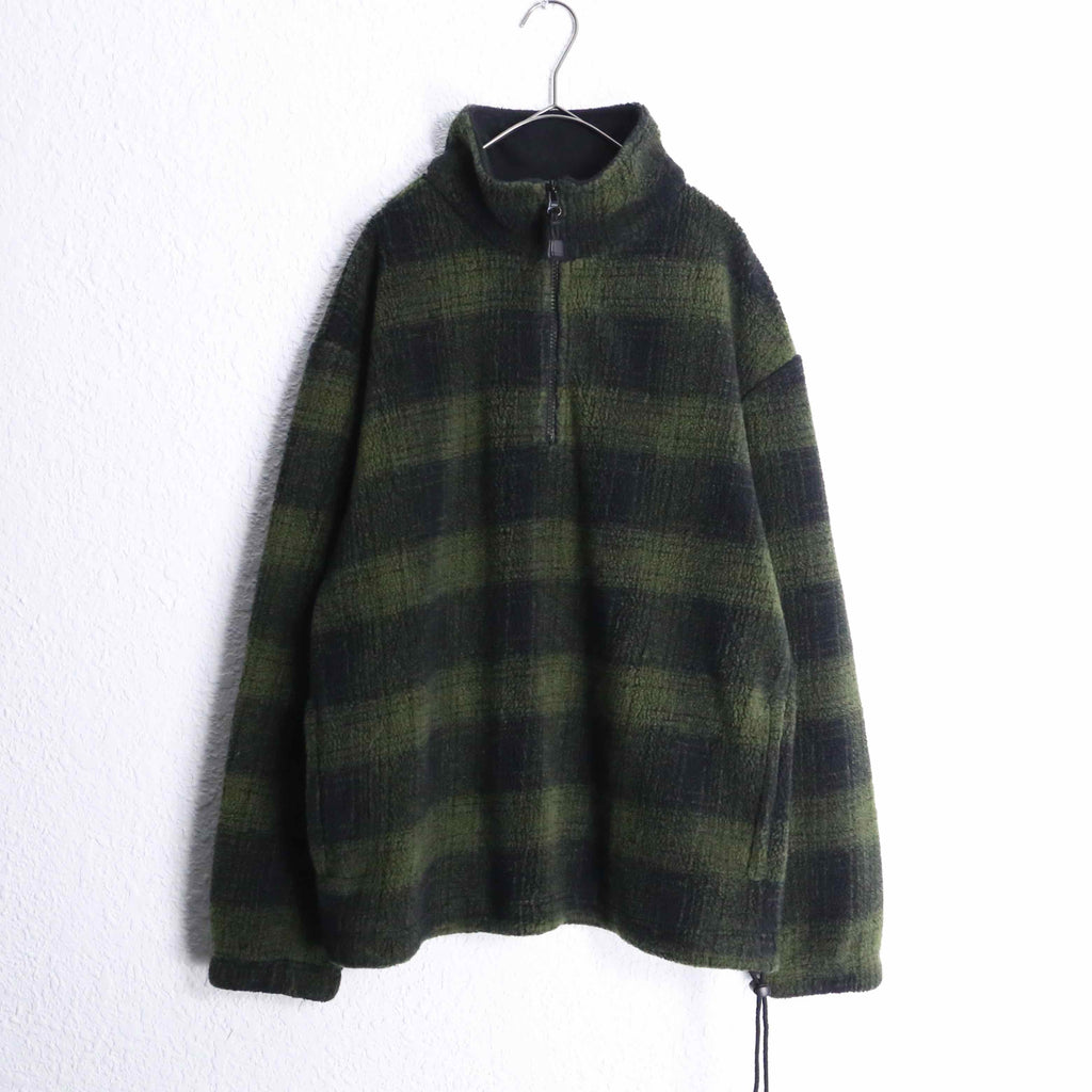 90’s “GAP” green check half zip fleece pullover