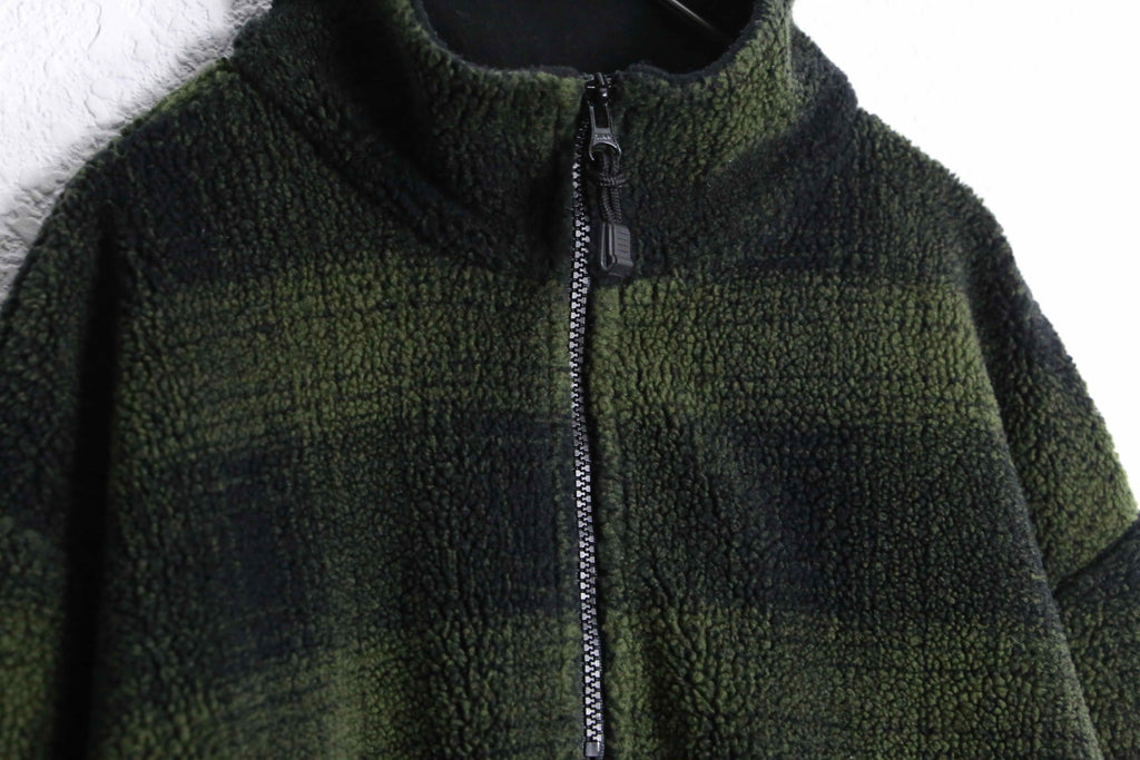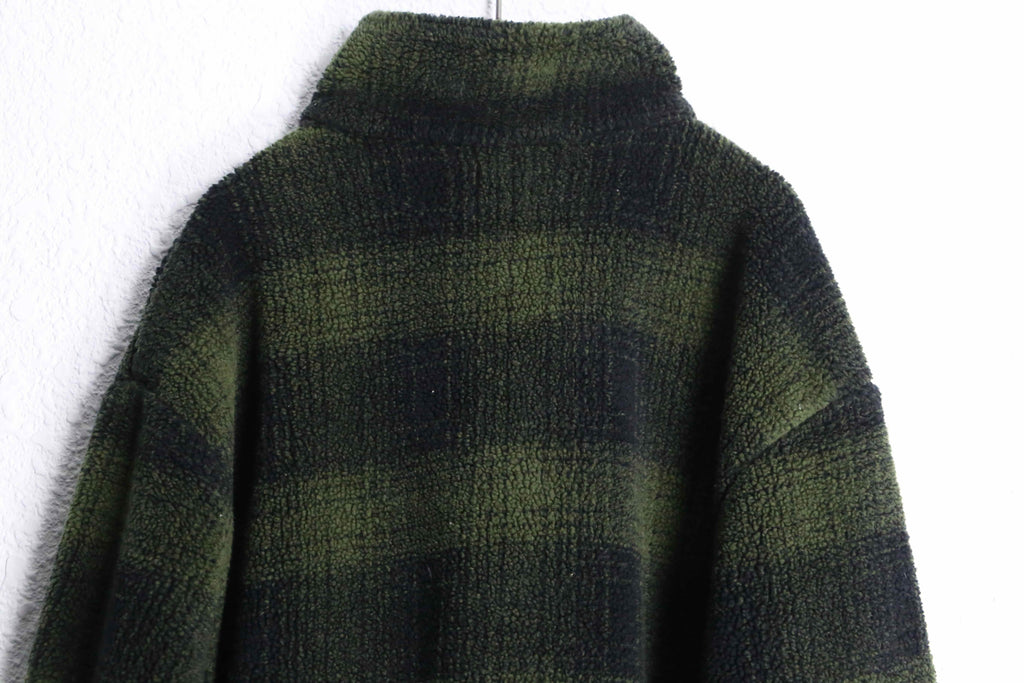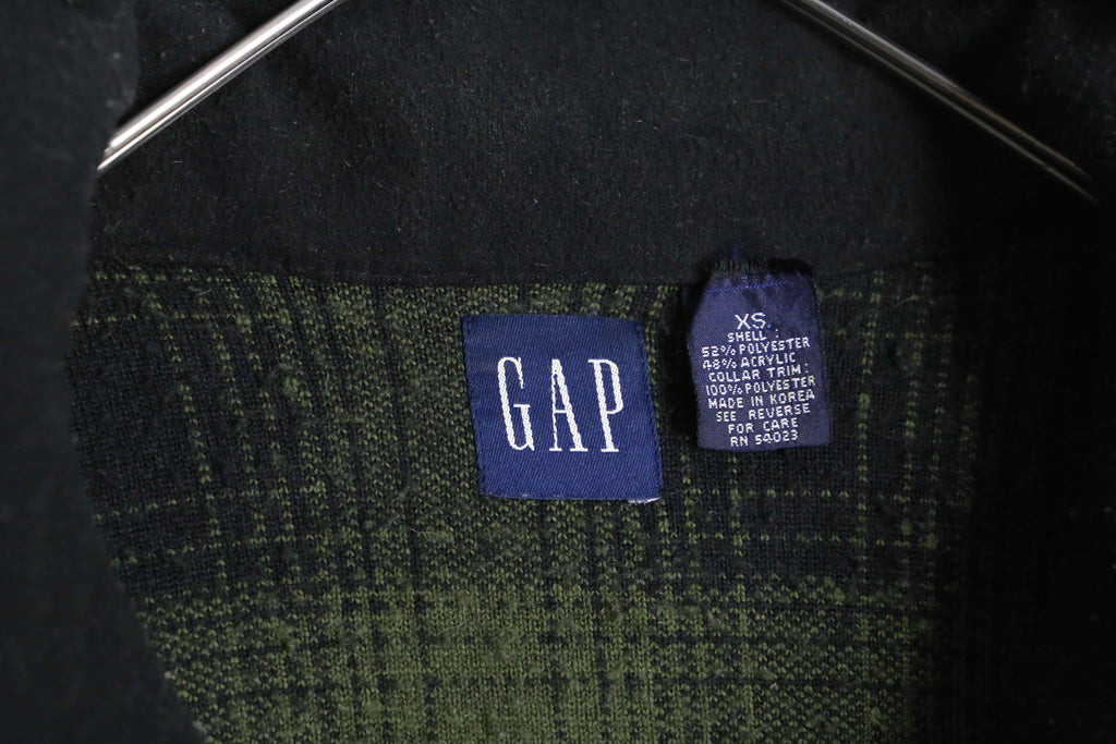 深いグリーンとブラックのチェック柄が印象的な、90’s GAPのハーフジッププルオーバー。ふんわりとした起毛感のある素材は軽くて暖かく、肌寒い季節にぴったりの一着。