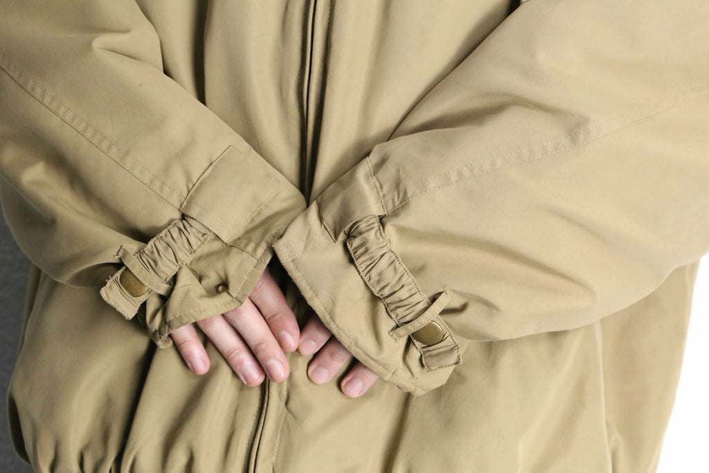 軽やかなポリエステル素材を使用した、ベージュカラーのドリズラージャケット。