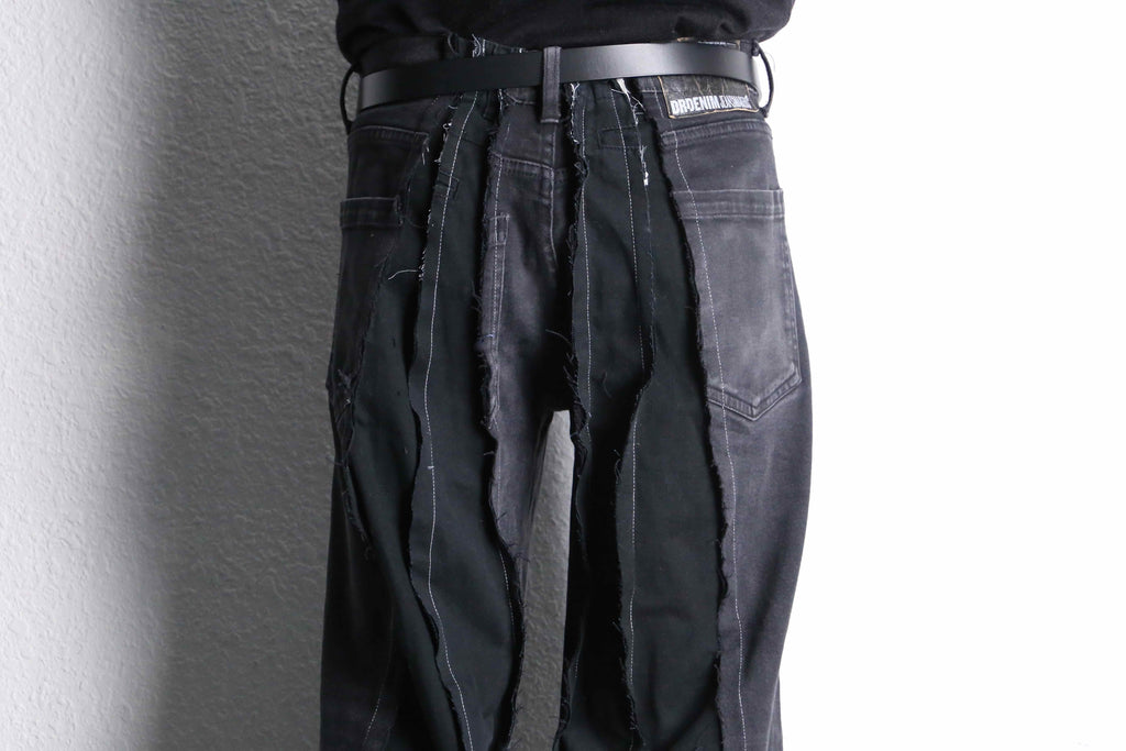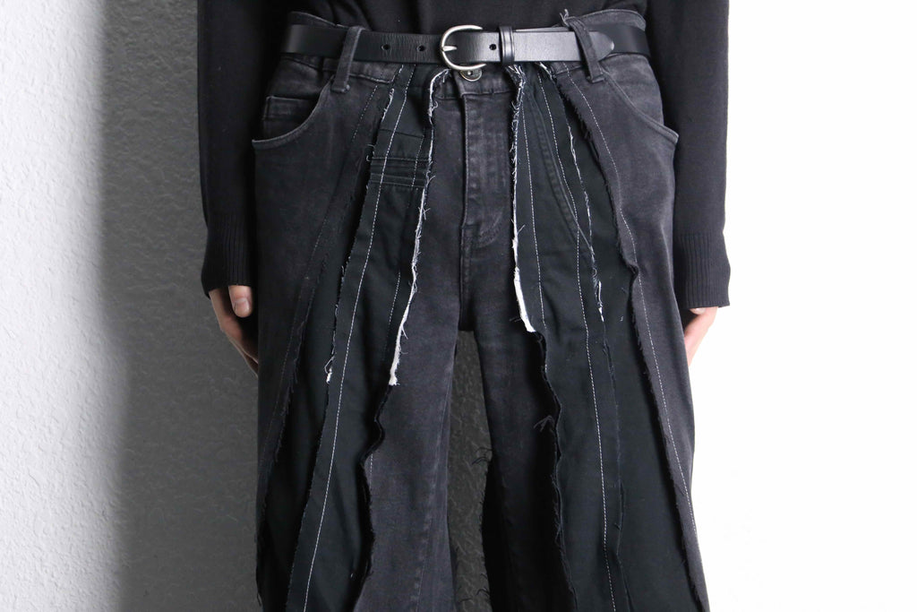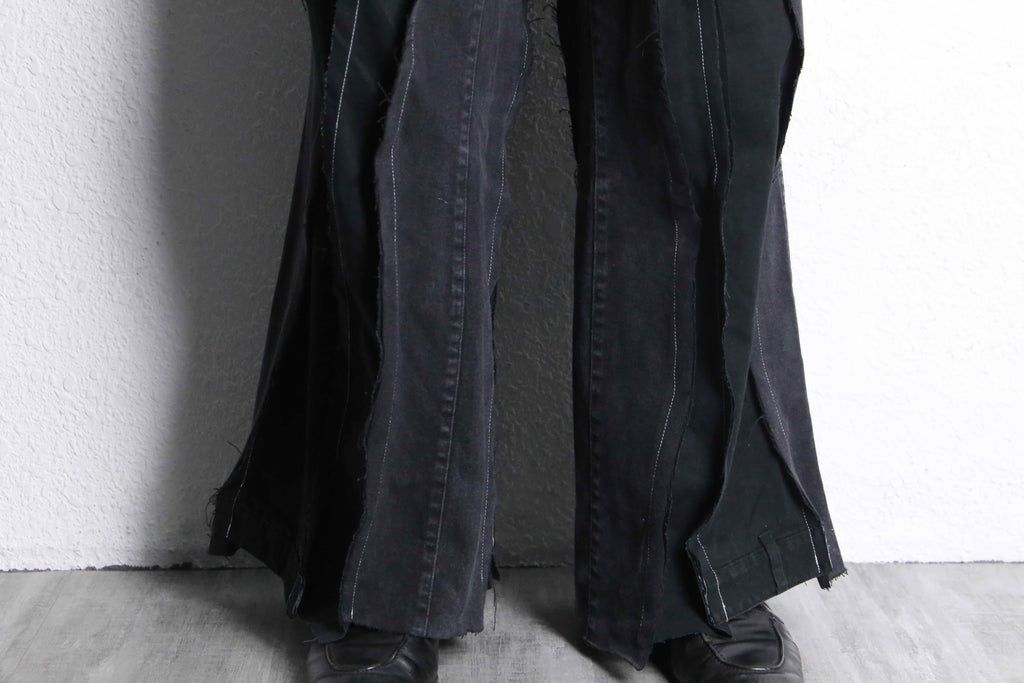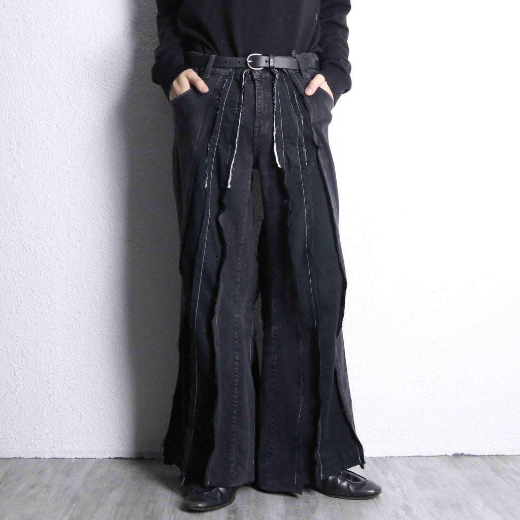 当店でも高い人気を誇るリメイクデザインの魅力が詰まった存在感抜群のブラックワイドデニムが入荷。