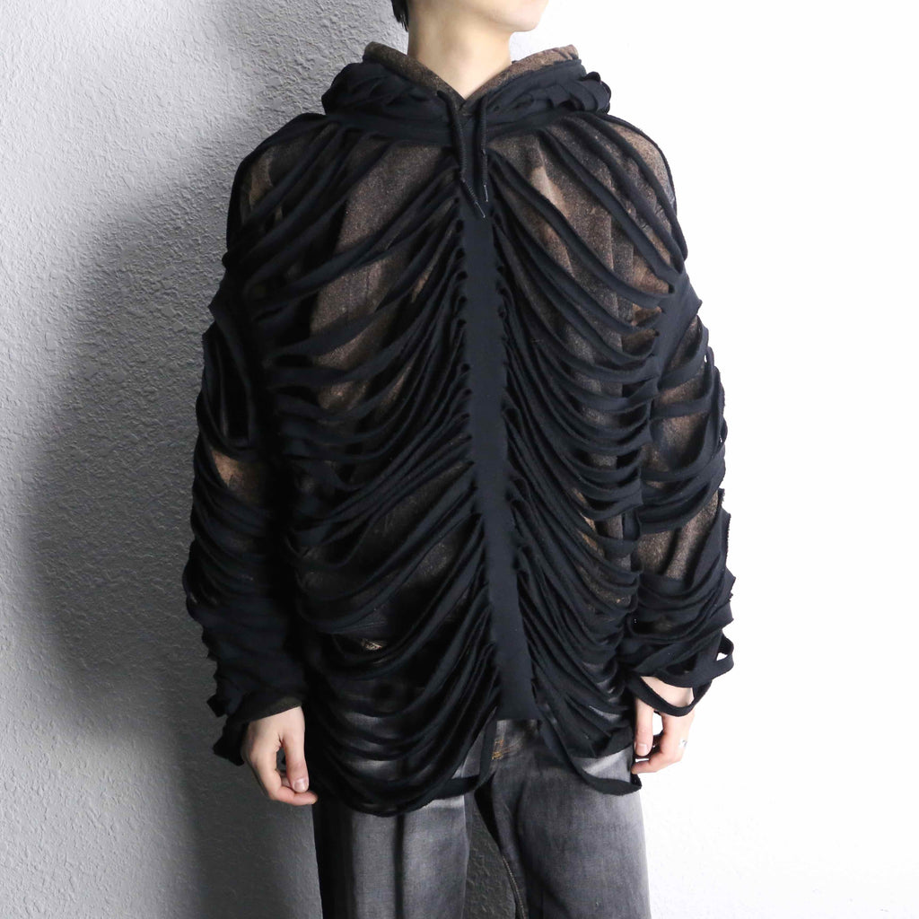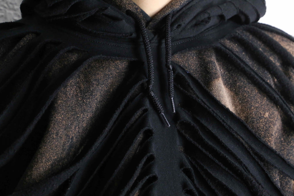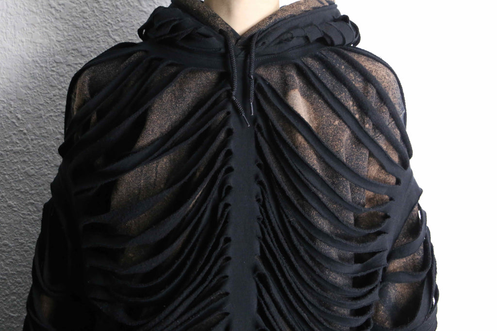 当店人気のリメイクアイテムよりカットワークを重ねることで立体的な表情を生み出したフーディが入荷しました。